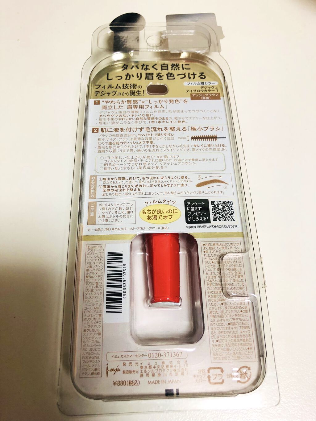眉専用フィルム 粒子径が小さく、少ない量で毛にしっかり密着✨ ブラシの先端直径3mm、コンパクトで塗りやすい アッシュブラウンのカラーは明るくなりすぎず、抜け感がだせる♡