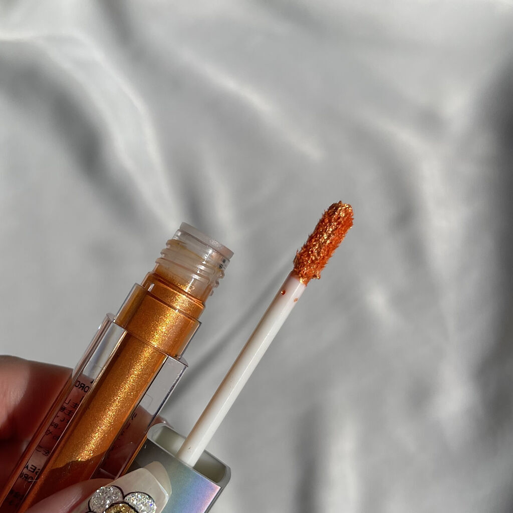 ADDICTIONの秋コレのパレットの中に入っているのに気づかず単色をお迎えしてしまいました😂笑 いざ単色で手に取ってみると可愛すぎて…! 太陽光での撮影なので少し暖かい感じに写っています。 1枚目でぎっしりの多色ラメ、伝わりますか?🥺 シンプルなメイクにたっぷり乗せてあげるのが可愛いです♡