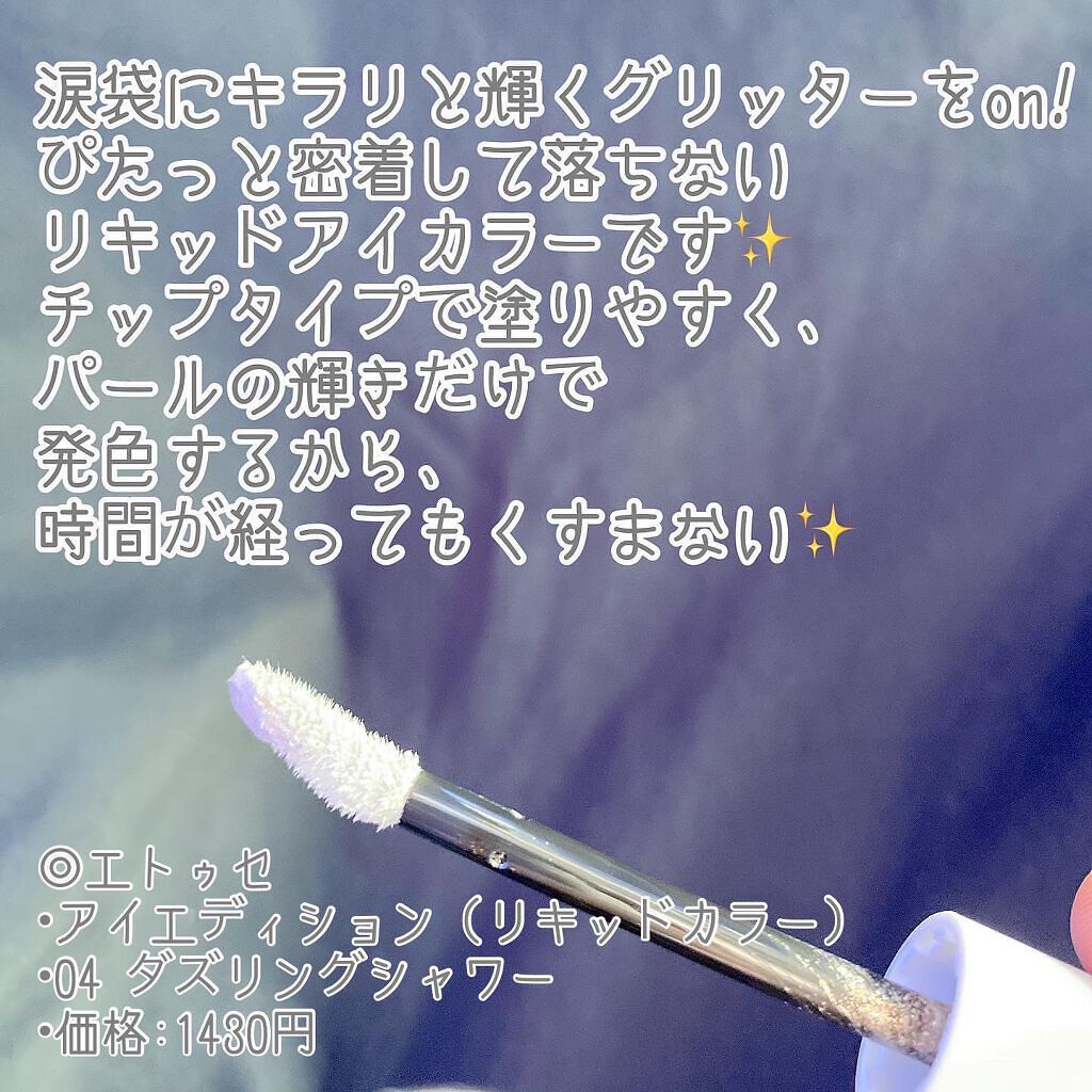 | リキッドアイシャドウランキング第2位 | 中に入っている偏光オーロララメの大きさがまた絶妙で、そのまま塗って使っても良いんだけど瞼にラメを乗せる感じで使ってもキラキラで可愛いよ | 詳細を見る | |