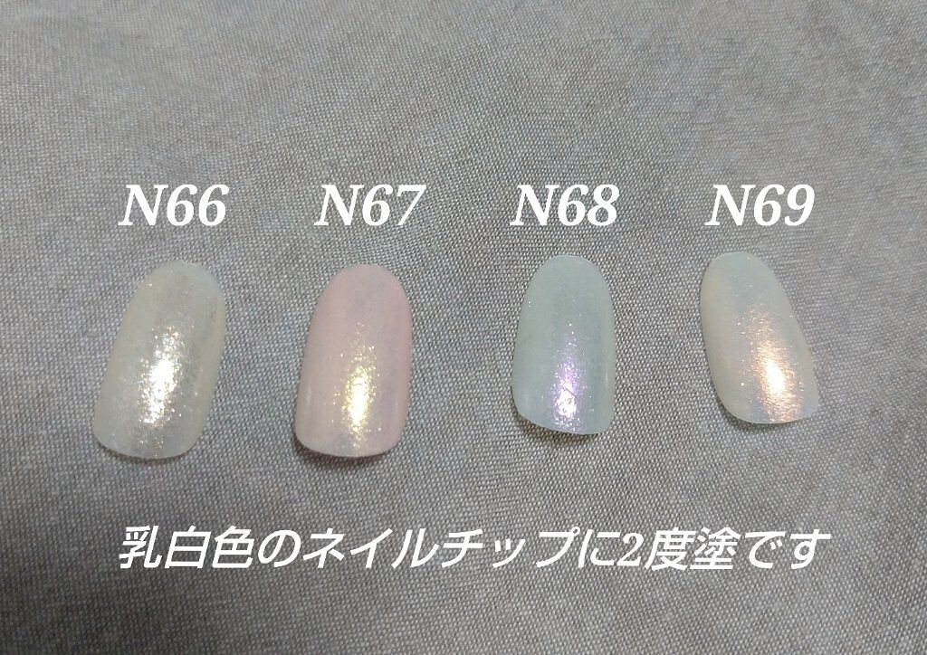 妖精の世界をイメージしたネイルカラーとの事でどれもとってもファンシーな感じで可愛いです😊 ゴールドのパールがキラキラです こちらは単色よりかはお好きなメインカラーと合わせたほうがより引き立つと思います 他の色はクリアカラーで重ね塗りをしてやっと色味が出てきますが、 こちらは1塗目からハッキリと色味が付く感じです 光の反射加減で水色っぽかったり青紫色っぽく見えたりします 他の色に合わせたり、単色でクリアカラーを活かしたグラデーションの塗りにするのも綺麗だと思います 4色の中ではパールが細やかな印象です 色味も合わさり角度で繊細に輝いて見えエレガント 個人的に一番お気に入りです😌 単色で重ね塗りしても他のカラーと合わせても良い感じです