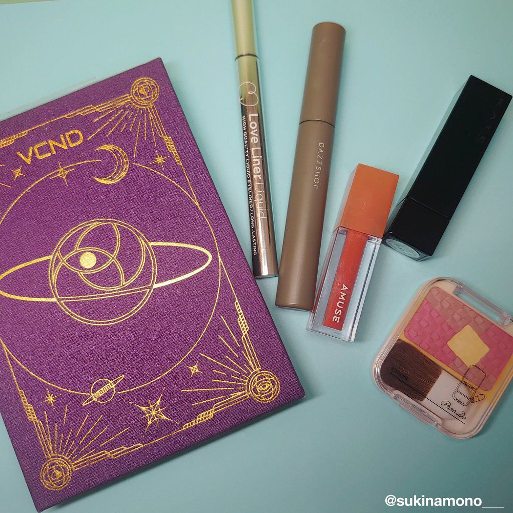 ハロウィンにも使える?オレンジまみれなメイク🍊 アイライナーも高発色なオレンジライナーを使ってとことんオレンジ! マスカラはブラック、チークはブラウン系のオレンジチークにして全体のバランスをとっています👀❤️ このアイライナーをパープルにしてもハロウィンぽいかも🎃💜