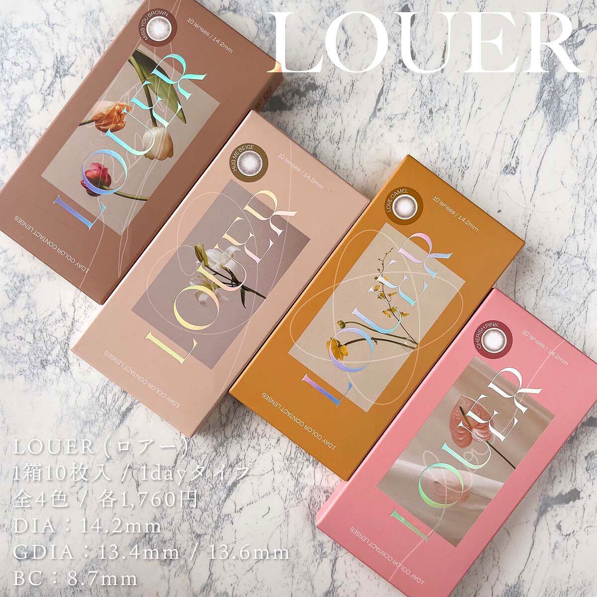 LOUER¥1,760写真順です📸MISSYOUBROWN(ミスユーブラウン)着色直径13.6mmHUGMEBEIGE(ハグミーベージュ)着色直径13.4mmLOVECAMEL(ラブキャメル)着色直径13.6mmCHERISHPINK最推し💕...