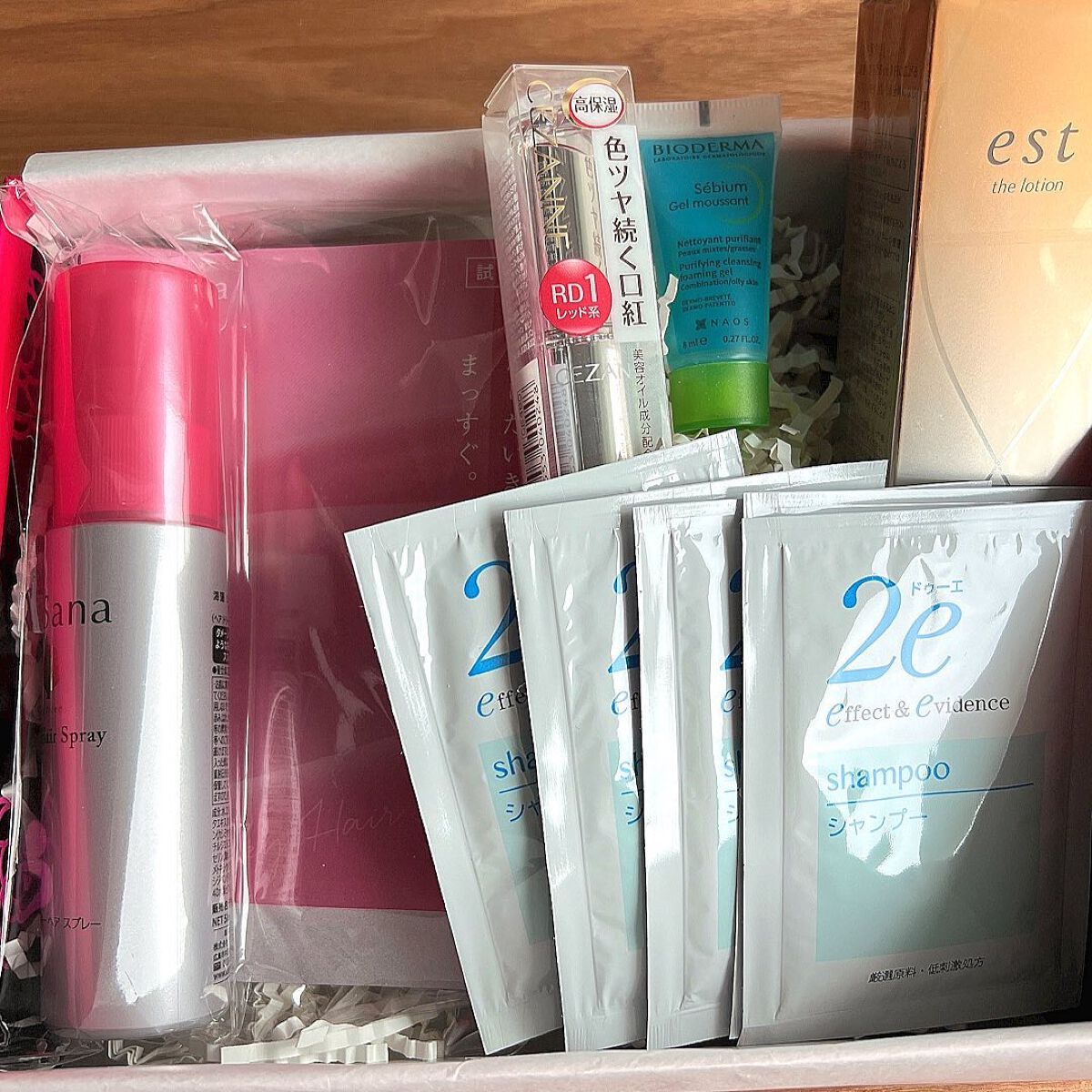中でも特に良かったのがアイシャドウ! くすみピンクだからすごく使いやすくて 甘すぎない大人っぽい印象に◎ 光沢のあるくすみピンクと大粒ラメが入っている ゴールドパールのどちらもとにかく可愛い🫠💕 しっとりとした質感なので密着力も高くて ラメ落ちやメイク崩れも気になりませんでした! 他の3点も大満足◎ ぜひ投稿の画像をご覧ください☺️ こんなにコスパ良くていいの?と思うくらい🥹 最高なキットでした♪買って良かった〜!