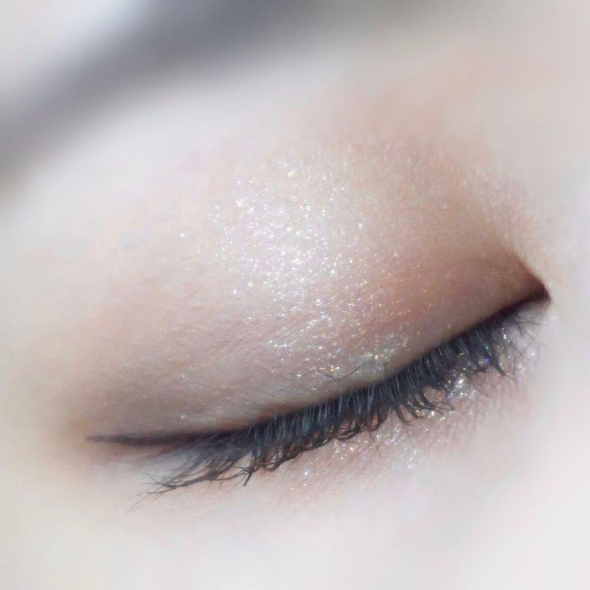 くすみグレー系のパレットが欲しく購入し、家に届いて開封した時意外とブラウン感が強くて失敗したかな?と思いましたが、瞼に塗るとくすみグレージュに発色。 左上のベースカラーはほとんど発色はないといってもいいくらい、他2つのマットカラーは発色がよく、ラメシャドウは割と煌めきが強い繊細ラメが使用されており、ギラッと輝く印象を受けました。 マットシャドウはrom&nd特有の比較的柔らかめでサラッとした質感、ラメシャドウは繊細ラメでサラッとしていて思ったよりラメ飛びはしない印象です。