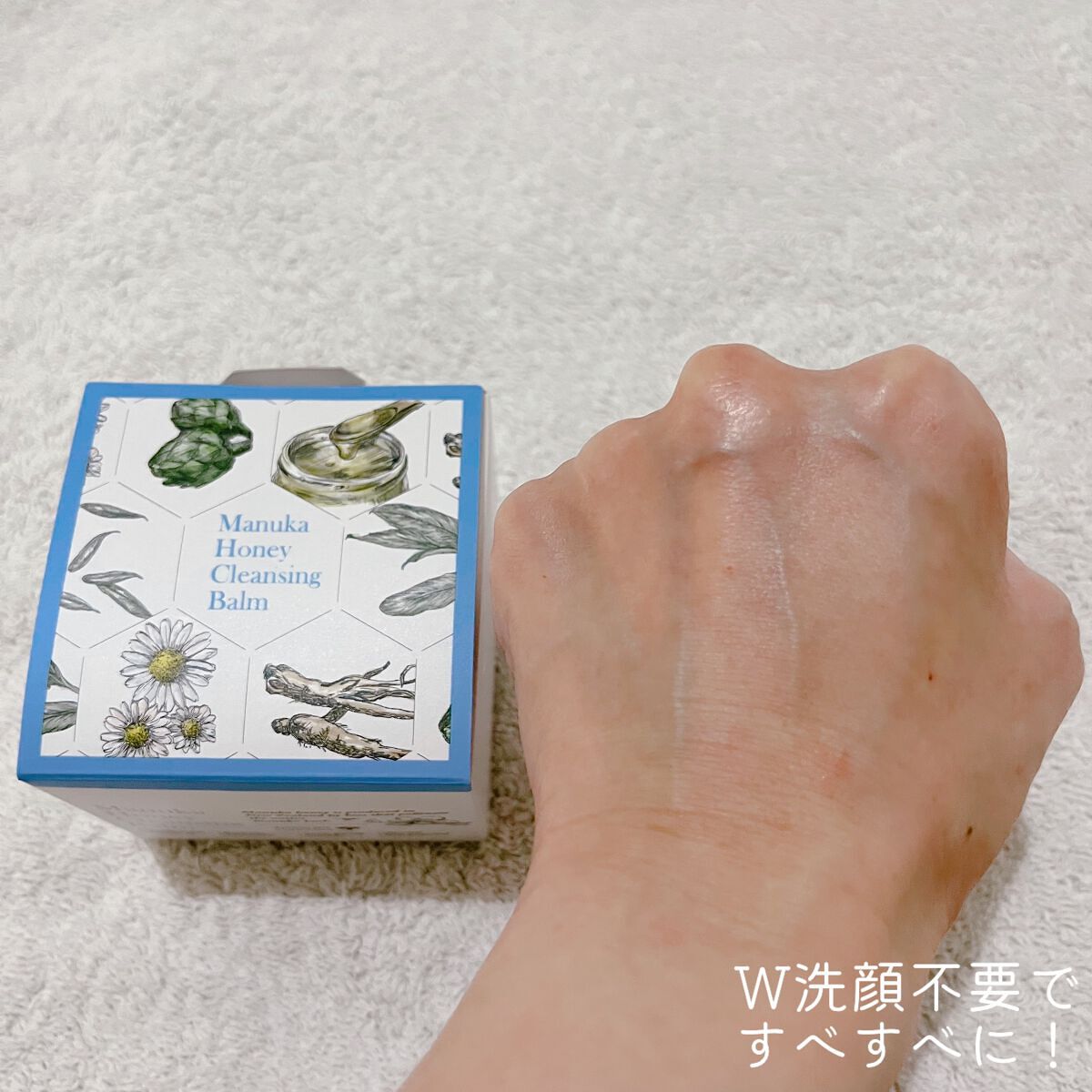 - 生マヌカ蜂蜜を」はじめ、豊富な美容成分をたっぷりと配合したクレンジングバーム。とろりとオイル状にとろけるバームが、肌に負担をかけずにメイク汚れもすっきりオフしながら、もっちりうるおいのあるクリアな肌に洗い上げます。 W洗顔不要の1品2役。毛穴の気にならない明るくなめらかな肌に導きます。