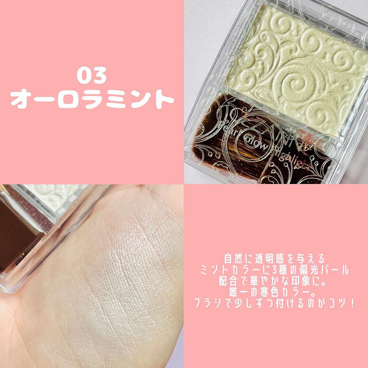 | ハイライト・シェーディングランキング第15位 | ラメのギラギラしたツヤ感ではなく繊細なパールのツヤ感が本当にキレイ! 肌馴染みが良く浮きにくいハイライトです。 | 詳細を見る | |