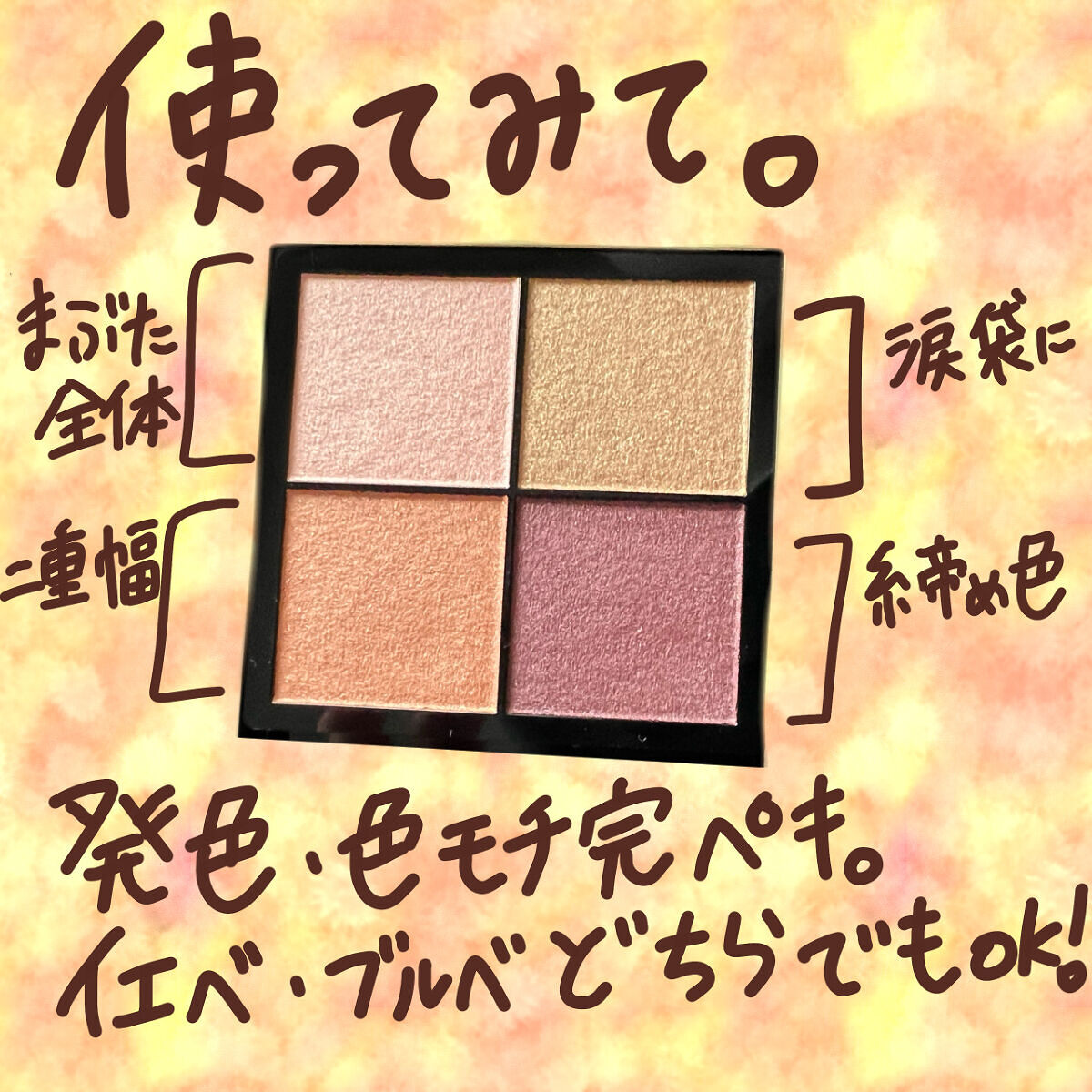 | 3つの異なる質感からなる4色パレットで、使い方によって雰囲気も質感も変わっていきます✨ | 詳細を見る |