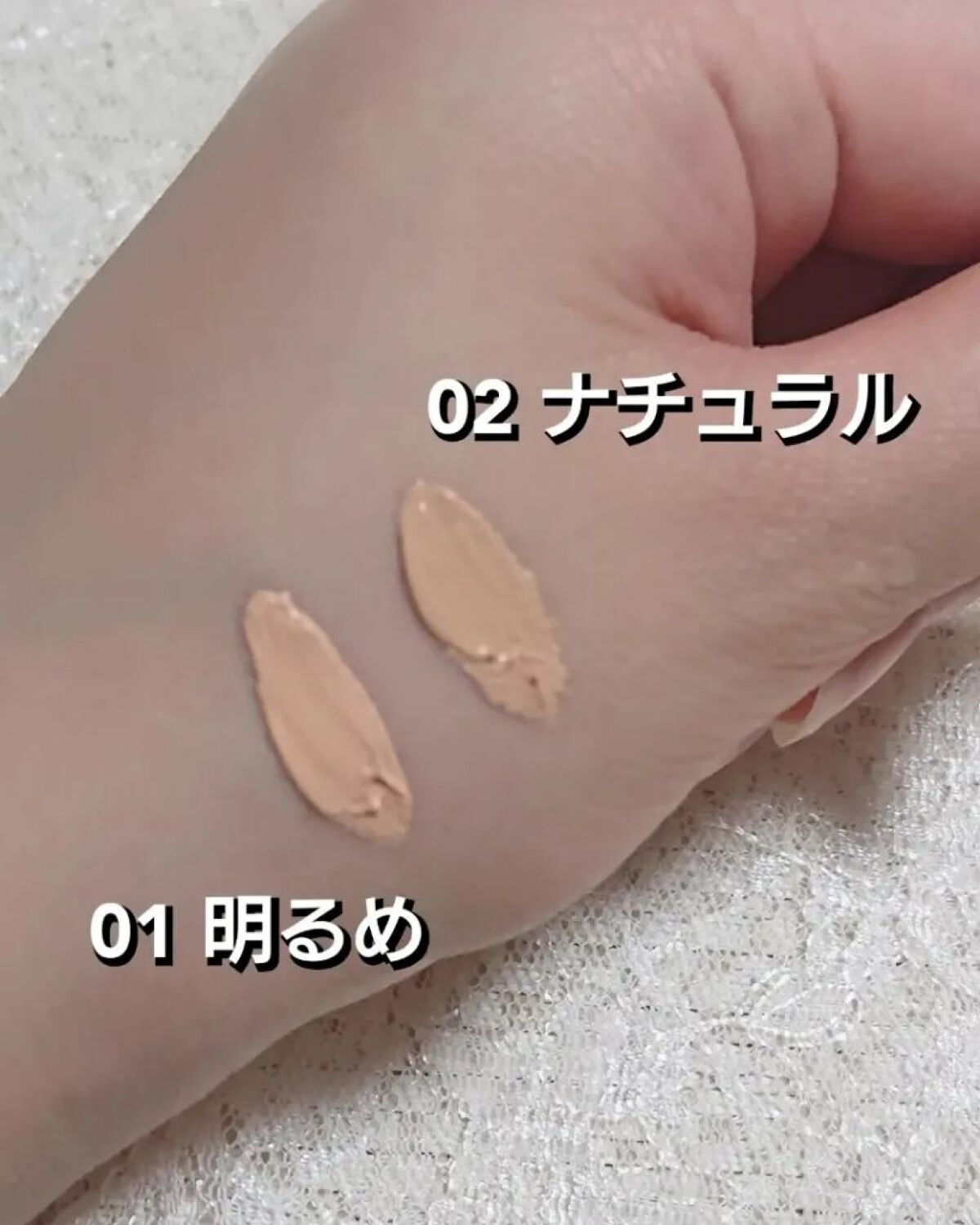 - <01 ライトオークル> 水、シクロペンタシロキサン、セチルPEG/PPG-10/1ジメチコン、グリセリン、BG、トリメチルシロキシケイ酸、ペンチレングリコール、リンゴ酸ジイソステアリル、ジイソステアリン酸ポリグリセリル-2、ジエチルヘキサン酸ネオペンチルグリコール、ジグリセリン、ベタイン、ポリメチルシルセスキオキサン、硫酸Mg、マイカ、ジメチコン、ソルビトール、フェノキシエタノール、ジフェニルシロキシフェニトリメチコン、(ジメチコン/ビニルジメチコン)クロスポリマー、トコフェロール、ヒアルロン酸Na、オリーブ果実油、ホホバ種子油、メドウフォーム油、パルミチン酸レチノール、コーン油、クダモノトケイソウ果実エキス、アロエベラ葉エキス、(+/−)酸化チタン、タルク、酸化鉄、水酸化Al、トリエトキシカプリリルシラン、ステアリン酸 <02 オークル> 水、シクロペンタシロキサン、セチルPEG/PPG-10/1ジメチコン、グリセリン、BG、トリメチルシロキシケイ酸、ペンチレングリコール、リンゴ酸ジイソステアリル、ジイソステアリン酸ポリグリセリル-2、ジエチルヘキサン酸ネオペンチルグリコール、ジグリセリン、ベタイン、ポリメチルシルセスキオキサン、硫酸Mg、マイカ、ジメチコン、ソルビトール、フェノキシエタノール、ジフェニルシロキシフェニルトリメチコン、(ジメチコン/ビニルジメチコン)クロスポリマー、トコフェロール、ヒアルロン酸Na、オリーブ果実油、ホホバ種子油、メドウフォーム油、パルミチン酸レチノール、コーン油、クダモノトケイソウ果実エキス、アロエベラ葉エキス、(+/−)酸化チタン、タルク、酸化鉄、水酸化Al、トリエトキシカプリリルシラン、ステアリン酸