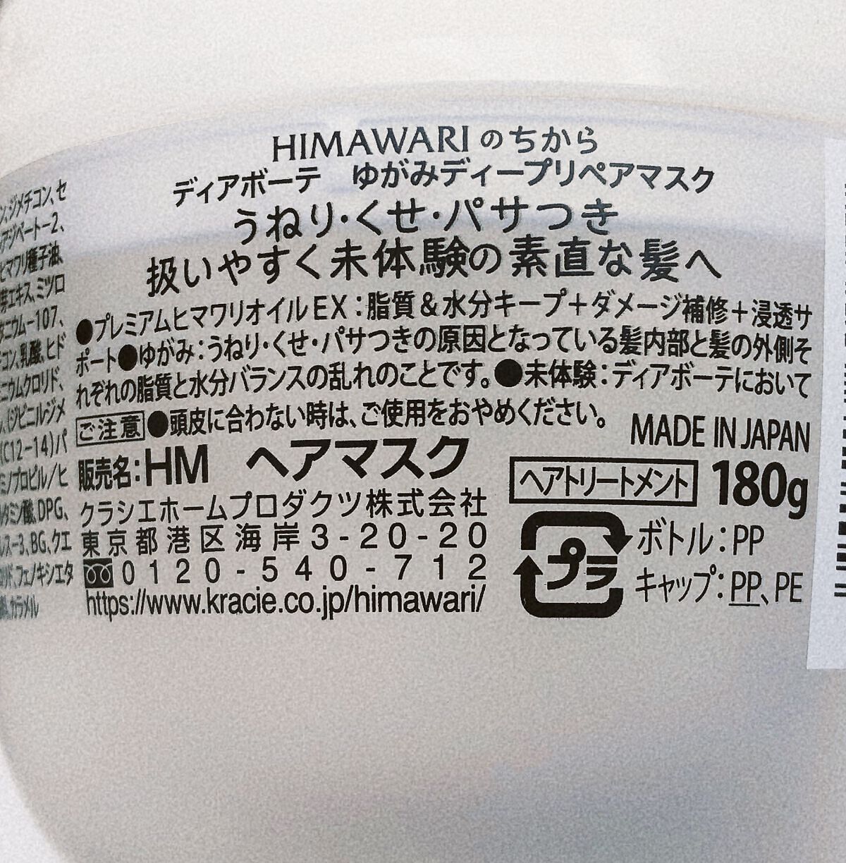 #ディアボーテhimawariの#ヘアマスク去年の#リンネル心地よいくらしフェスタ(#二子玉川ライズ )のイベントでもらったのだけれど #ゆがみディープリペアマスクという名前からきっとうねり対策だな、って思って梅雨の時期まで待ってたこれ、いい...