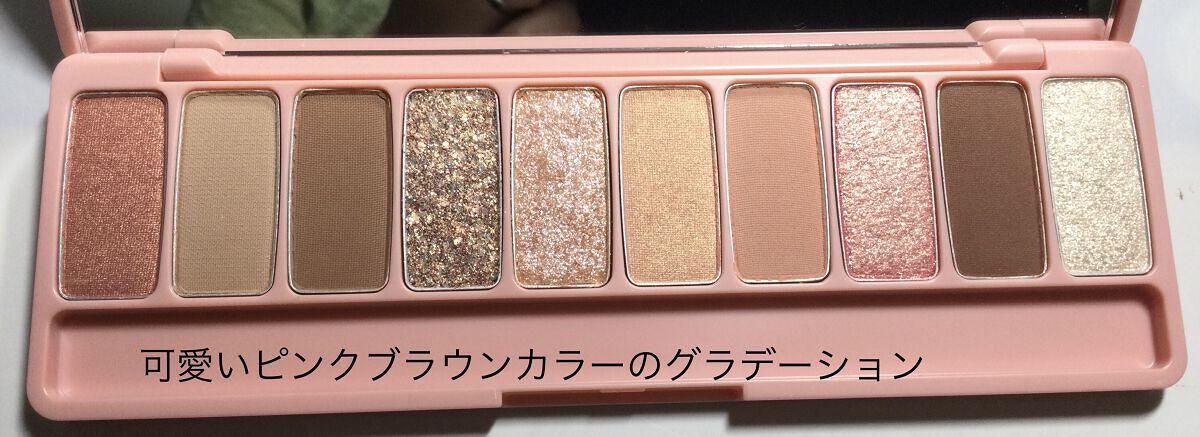 - 肌なじみの良い、鮮やかな発色で目元を華やかに彩る捨て色なしの10色アイシャドウパレット 異なる3種のテクスチャーを自由に組み合わせて、グラデーションも思いのままに。 NEW 2023.4 ・肌トーンにあう配色を詰め込んだトレンドカラー 肌トーンに合わせて、自分に似合うトレンドカラーが楽しめる♡ パーソナルカラー×トレンドカラーの掛け合わせパレットで、デイリーメイクもスペシャルメイクも気分にあわせてなりたい自分に! ・むにゅっとジェル質感ラメで高密着、煌めく目元 パレットの中でもポイントとなる大きめ粒子のラメは、ジェルのような新質感で落ちにくく肌にぴったりと密着します。キラキラとした目元をキープします。 ・使うカラーは大きめに!リアル捨て色なしパレット ベースやラメのよく使うカラーと締め色や濃い色等の減りが少ないカラーを異なるサイズで詰め込んだ、リアル捨て色なしパレット! <使用方法> 付属のデュアルシャドウブラシでベースカラーをまぶた全体に塗り広げます。細いブラシでグラデーションや目尻、アイライン、涙袋などのポイントカラーをのせて仕上げます。