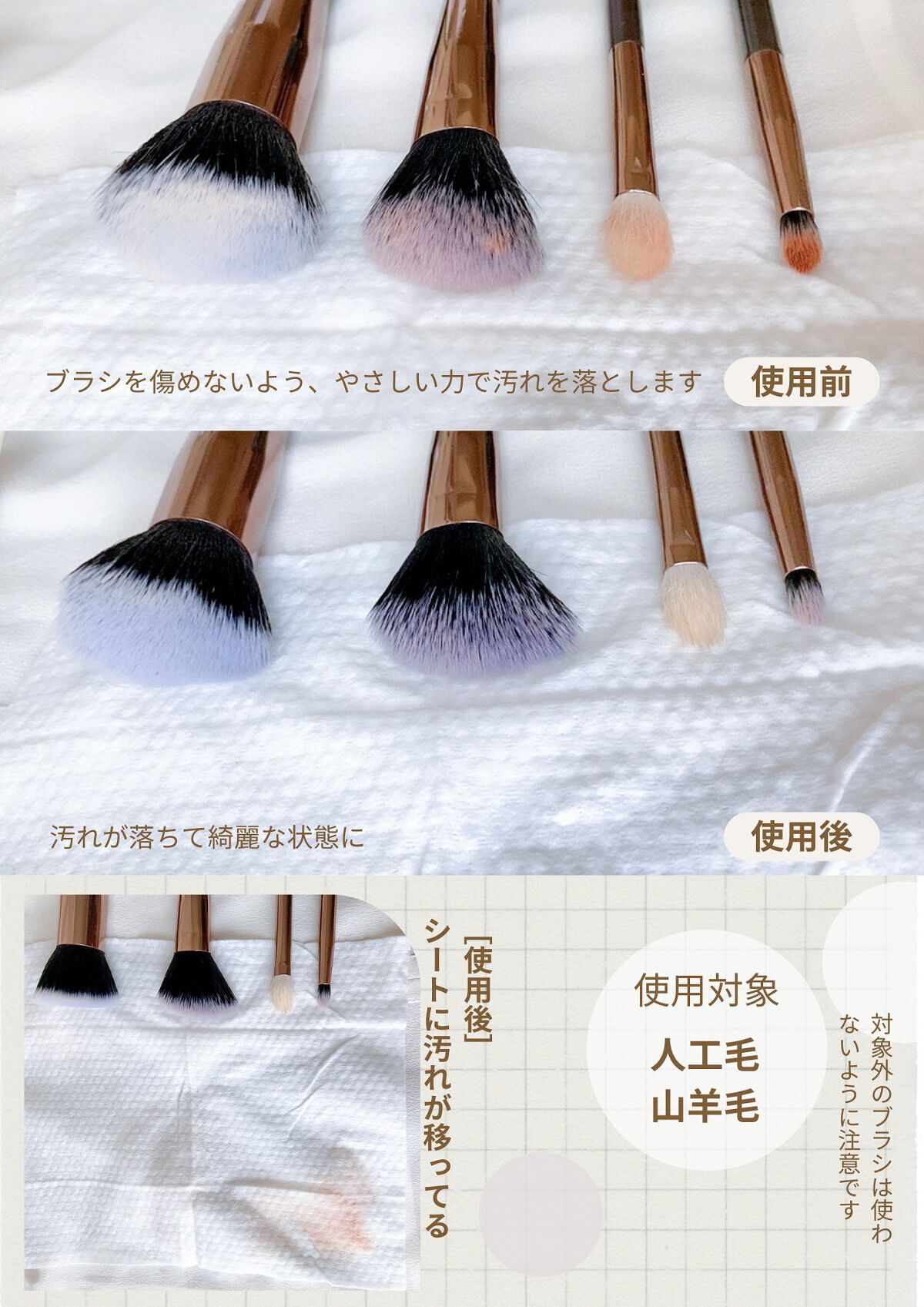 - 水なしで簡単&スピーディーに洗えるメイク道具専用のクレンジングティッシュ。 毎日洗えないメイクブラシ、さっと拭き取ってキレイに保ちます。