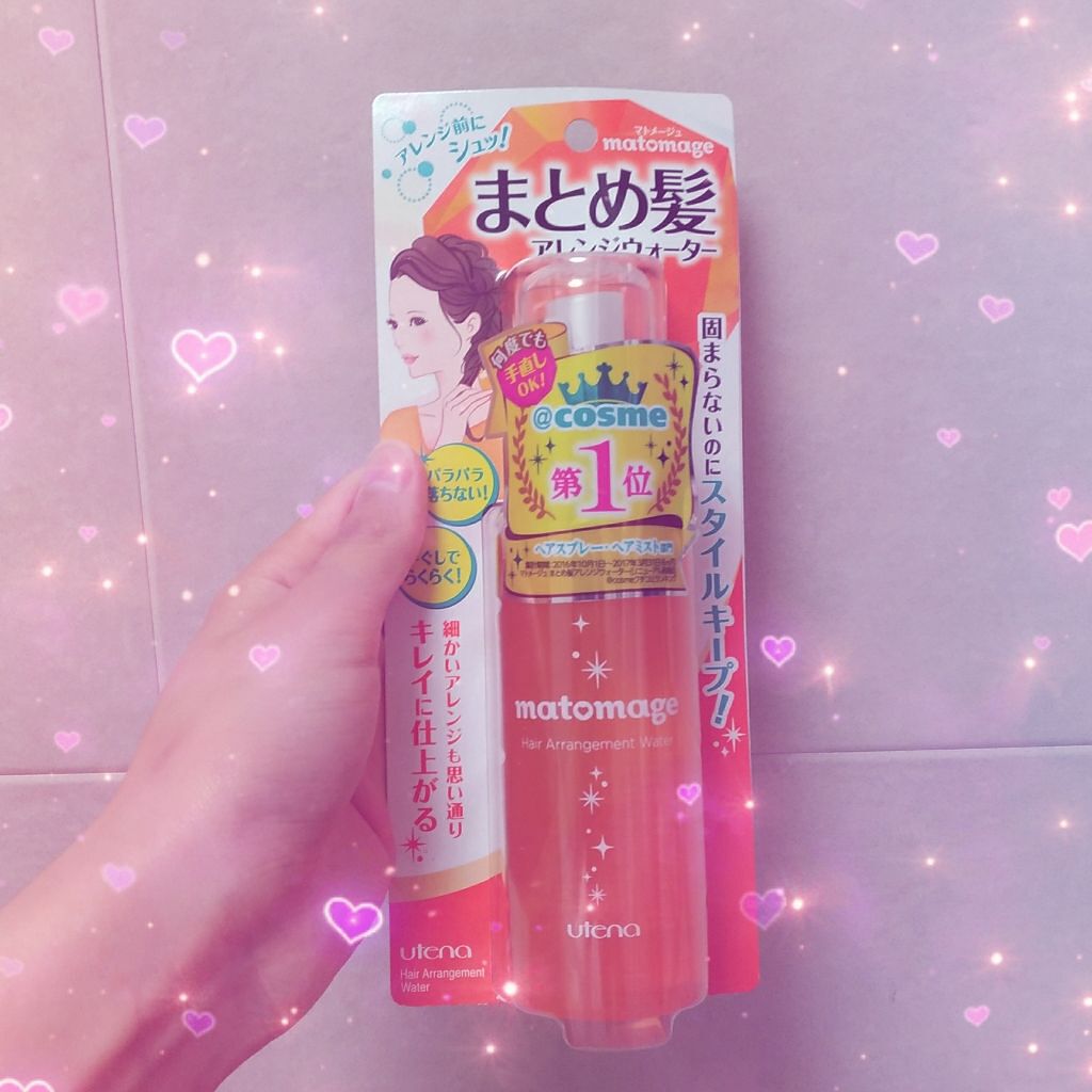 マトメージュ まとめ髪アレンジウォーターまとめる前にスプレーするだけで髪を扱いやすくし、編み込みなどのヘアアレンジも上手にできるワックスウォーターです!ワックスやスプレーみたいにガチガチに固まることはなく、ナチュラルに扱いやすくしてくれました...