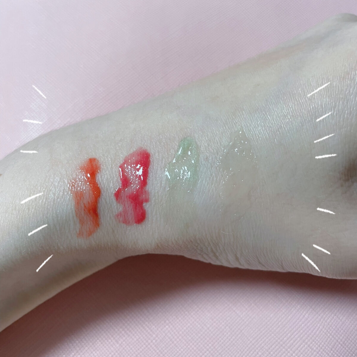 どの色も使いやすく、捨て色がありません😌 公式サイトで見た時は、ピンクみが強いかなと思ったけど、オレンジ寄りのピンクもあるのでイエベさんでも使いやすいと思います😊 この価格でこんなに使いやすくて綺麗に仕上がるの、やはりCANMAKE最強ですね✨ 真ん中のハイライトカラーは涙袋作りに使っています。キラキラ感がちょうど良く、綺麗な仕上がりになります!