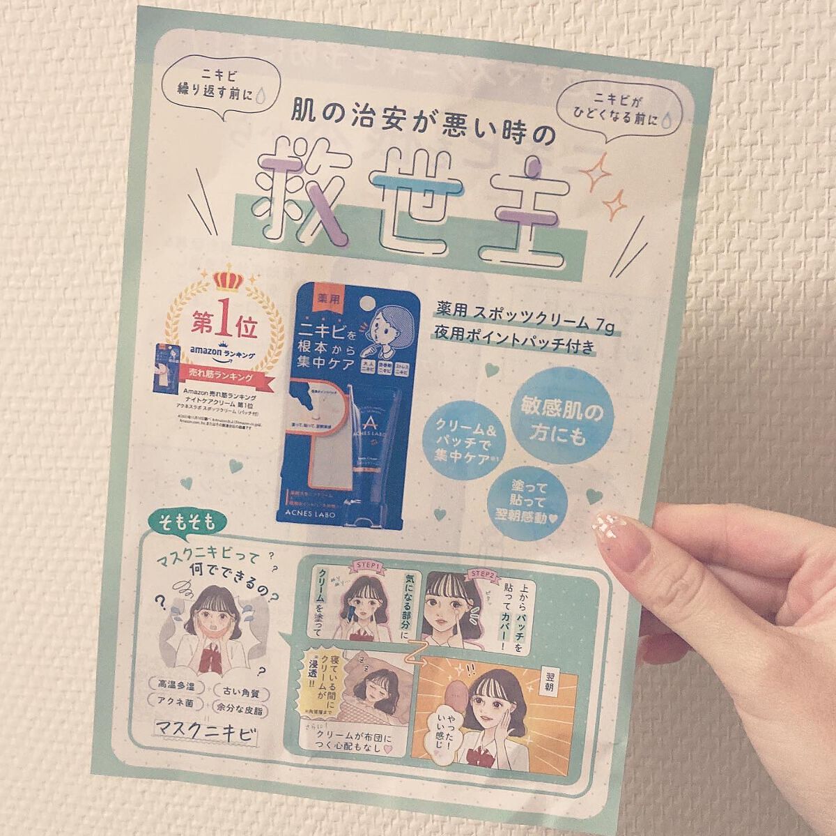 アクネスラボ 薬用ニキビケアスポッツクリーム¥1,518ニキビできそう!ってなったらコレ!どんな良いニキビ対策コスメつけても触ったりこすれちゃったりする……。触らないのがいちばん!って言われても、子供がいると触られちゃうし、自分でも無意識に触...