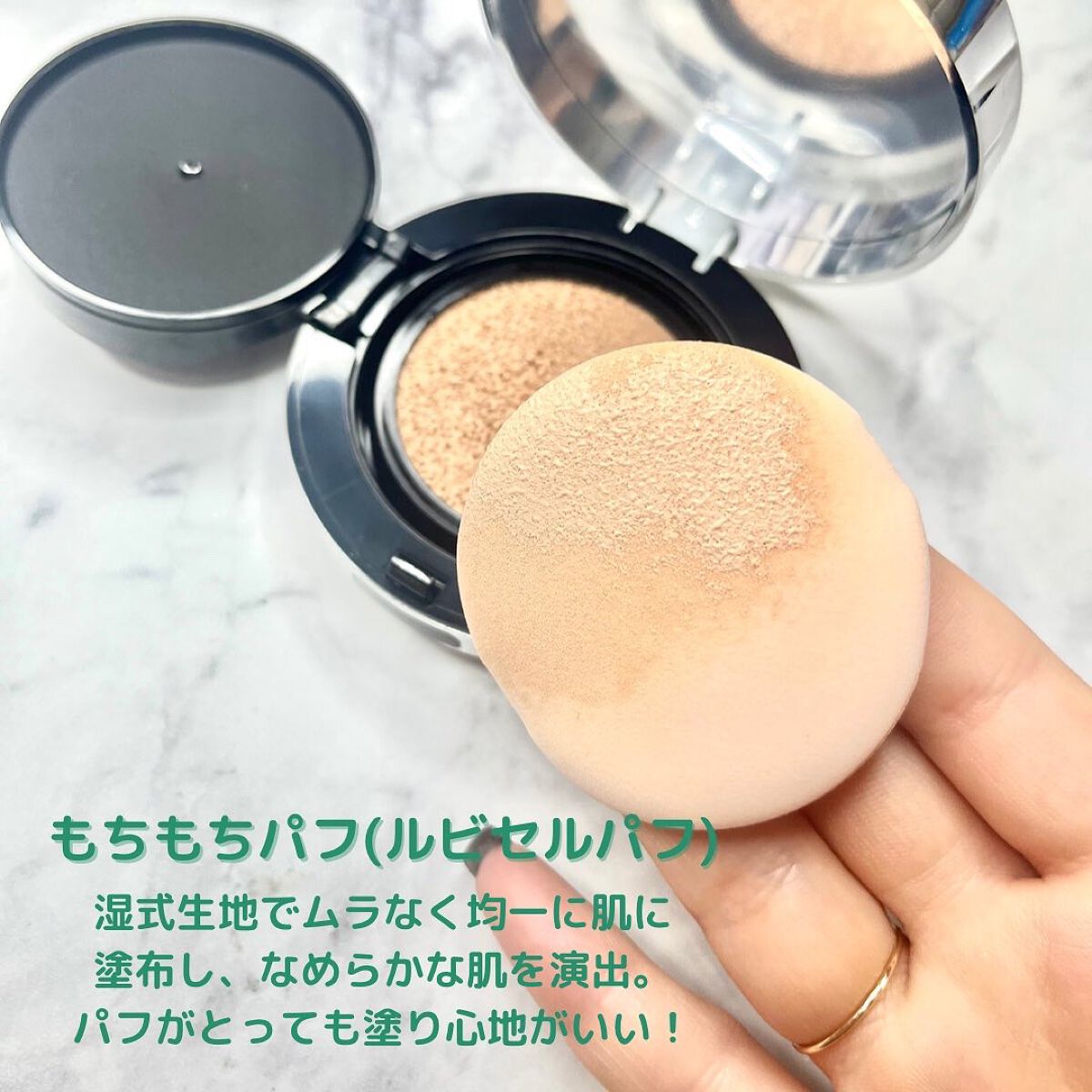 - ・カバーするだけじゃない!肌を整え、紫外線カットまでOK! ・マスク汚れNO!ピタっと密着してマスク着用にも! ・カバー/密着/化粧もちを一度にケア◎素肌のようになめらかカバー◎ ・ルビーセルパフ!しっかり肌へ密着させメイクのヨレを防ぎます。 ・しっとりした使用感+サラッとした仕上がり! 使用方法 -スキンケアの後、適量を専用のパフに取り、 顔全体にまんべんなく押し当ててなじませます。