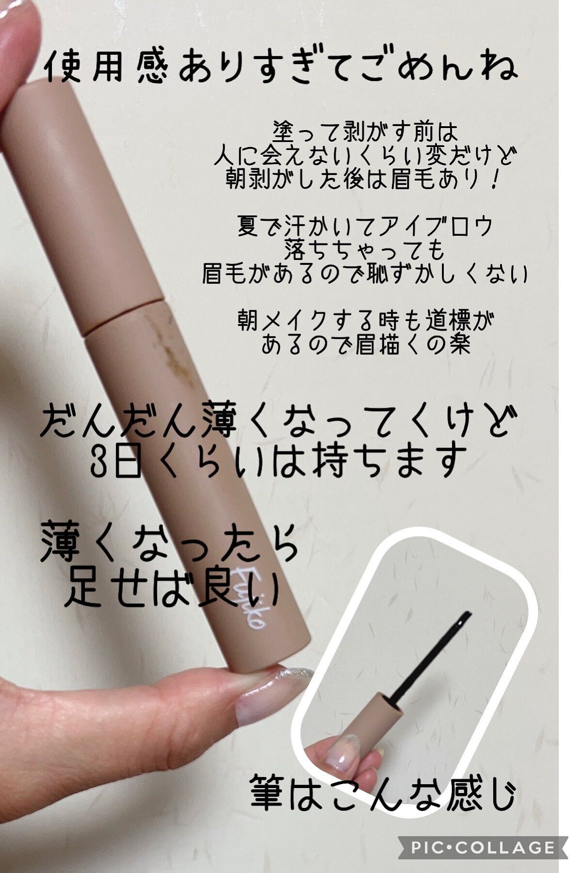 | 眉ティントランキング第5位 | 朝忙しい時も寝起きでも綺麗な眉のままなので、お泊りでも安心!3日ほど持続するので嬉しい! | 詳細を見る | |