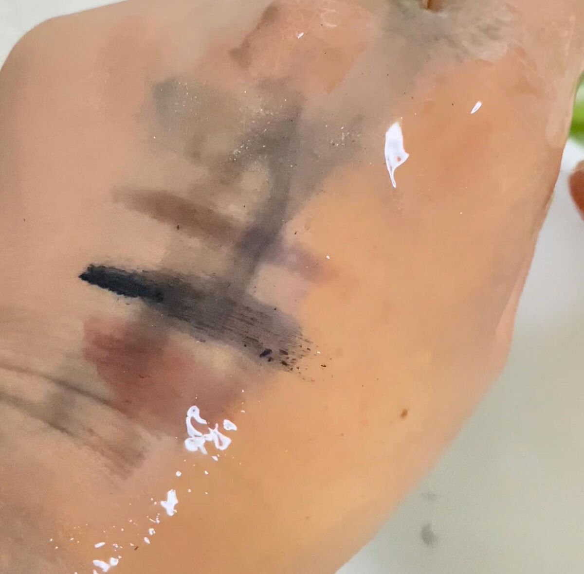 - <150g> 水、ペンチレングリコール、BG、グリセリン、水溶性コラーゲン、グリチルリチン酸2K、ティーツリー葉油、DPG、加水分解コラーゲン、水酸化Na、ヒアルロン酸ヒドロキシプロピルトリモニウム、炭酸水素Na、デキストリン、ポリソルベート85、サピンヅストリホリアツス果実エキス、ゲンチアナ根エキス、黒砂糖エキス、アクリレーツコポリマー、アーチチョーク葉エキス、炭、ポリソルベート80、キラヤ樹皮エキス、ヤシ油脂肪酸PEG-7グリセリル、ベントナイト、10-ヒドロキシデカン酸、アウレオバシジウムプルランス培養物、セバシン酸、1,10-デカンジオール、コメエキス、サクシノイルアテロコラーゲン、ムクロジエキス、カカオエキス、乳酸桿菌/豆乳発酵液