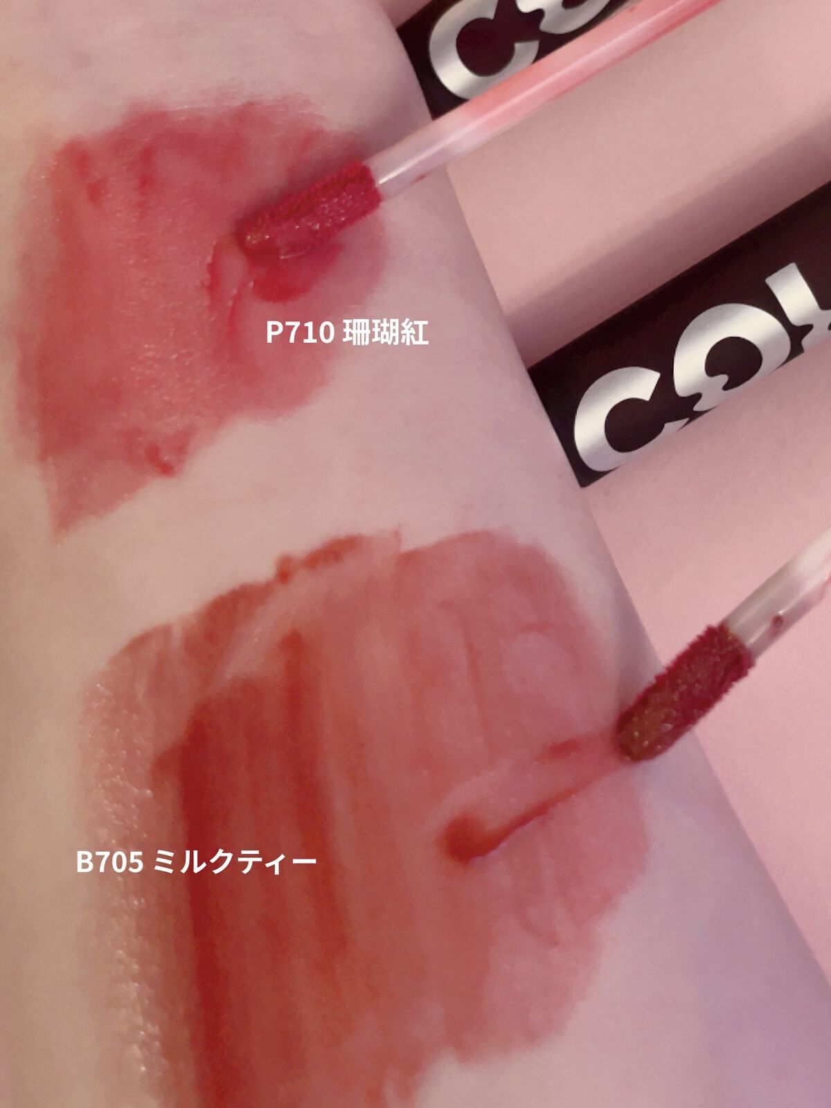 COLORKEYのシャインミラーティントノーマルパケとアイスクリームパケ(。・ω・。)色はノーマルパケがp710珊瑚紅アイスクリームパケがp723バラカクテルどっちも可愛い(*^^*)でも最近気づいたわたしツヤツヤ似合わなくね((笑))マット...