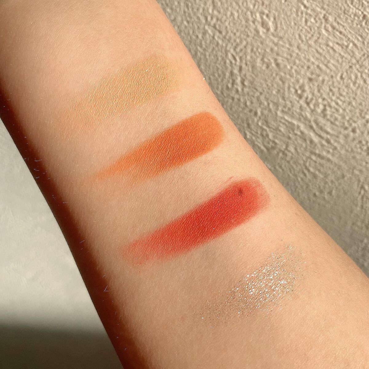 \にゃんこアイシャドウメイク/💐ZEESEAアニマルアイシャドウ05都会の夕暮れパキッとした発色が有名なZEESEAオレンジのアイシャドウでまるで夕焼け気分夏なので明るさと発色重視で濃い締め色は使わずメイクしたよラメがざくざくなのに...