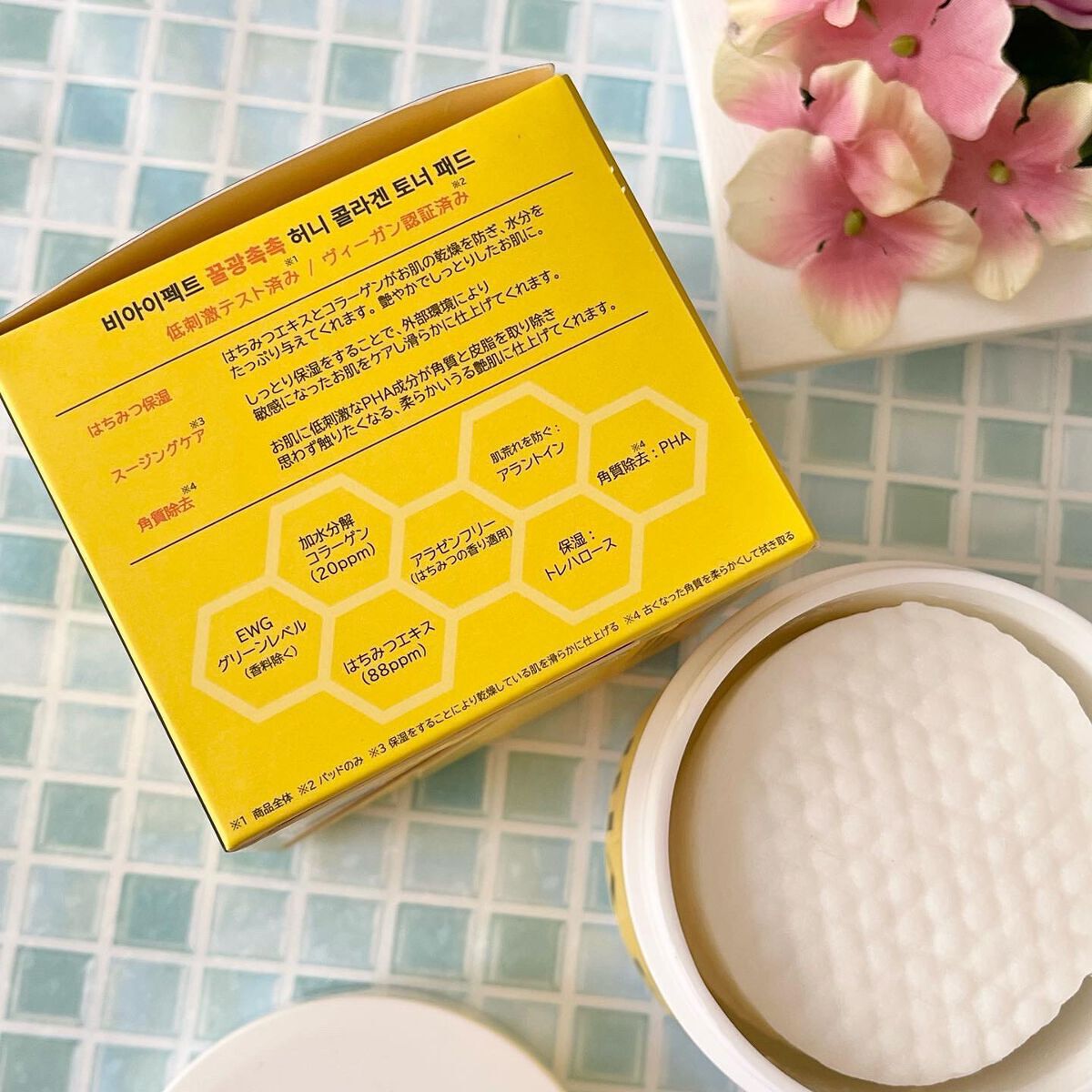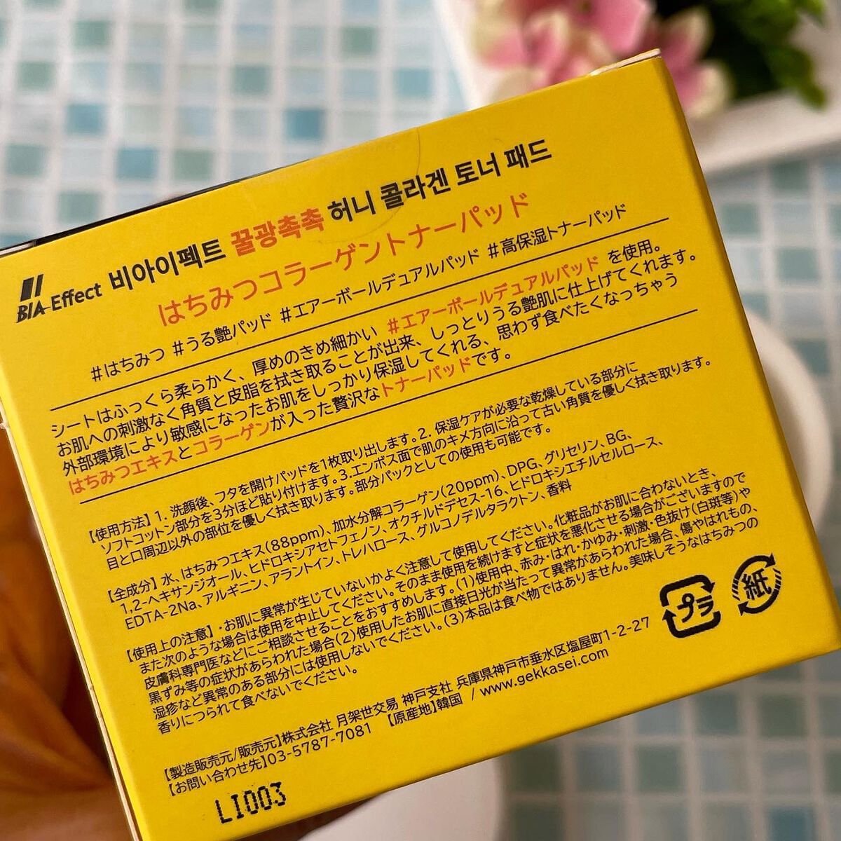 \はちみつのあま~い香りが大好物♪高保湿トナーパッド/BIAEffect(ビアエフェクト)はちみつコラーゲントナーパッド60枚140ml660円→559円(メガ割価格)パックなどのOEMを手掛けていた会社が立ち上げた韓国のスキンケアブランド、...