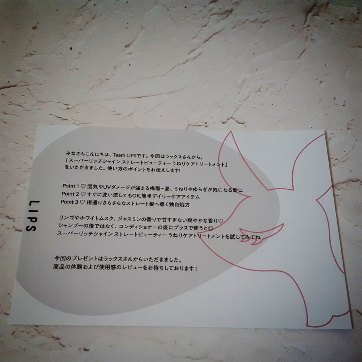 初めてLIPSからのプレゼントに当たりました!⭐LUX スーパーリッチシャインダメージリペアリッチ補修ヘアマスク 200g【香り】「朝摘み果実とウォーターブロッサムを感じさせる香り」だそうです。ほんのり甘酸っぱさがあるけど、落ち着いたあるフル...
