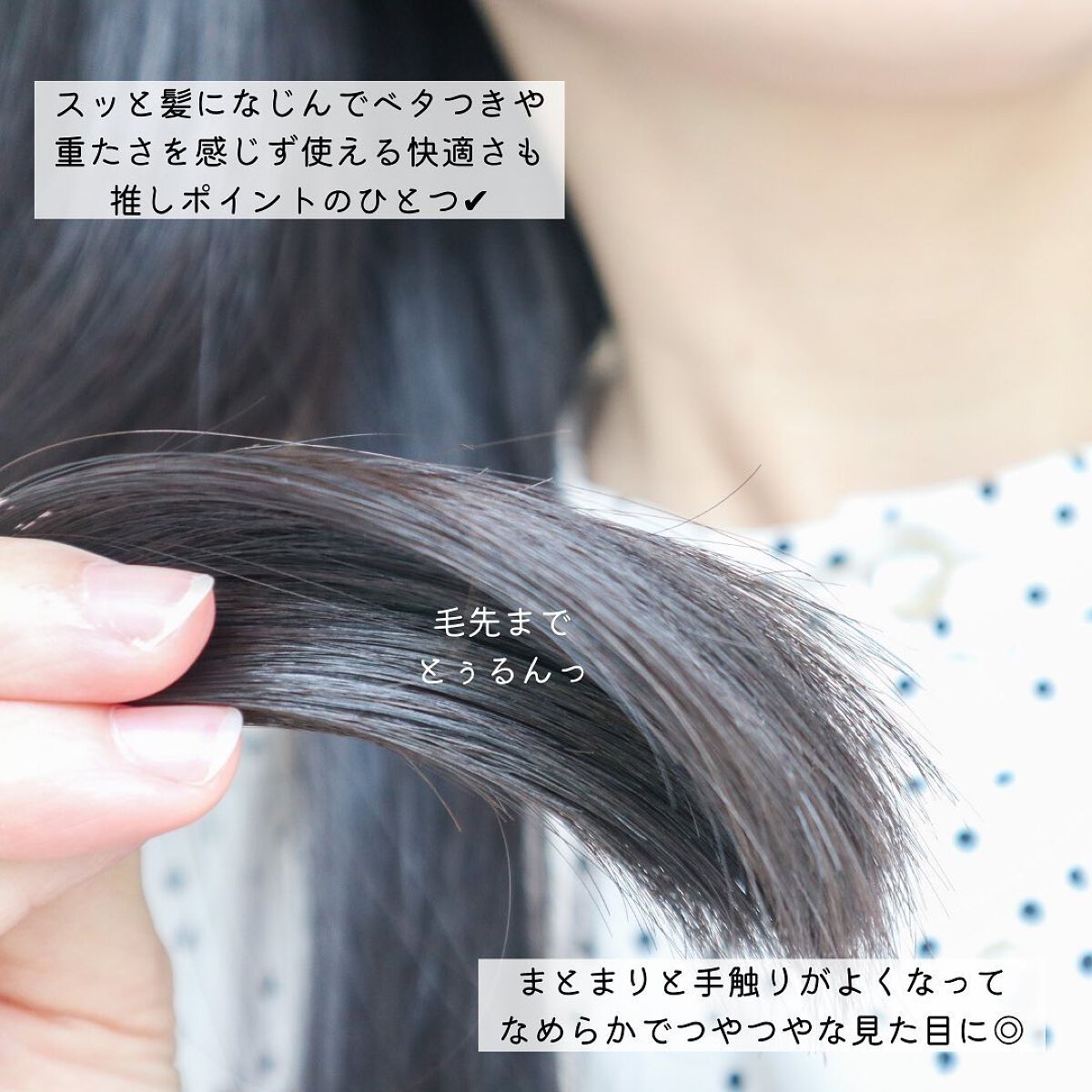 濃密Wオイル配合で髪のわずかな傷みも集中補修。 お風呂上りの洗い流さないトリートメントとしてはもちろん、スタイリングの仕上げにも使える。 つやつや&さらさらで手触りの良い髪になる仕上がりに感激! 少し前まではウェット感のある髪がトレンドですが、最近はダメージの無いさらさらがトレンドですよね! 冬の乾燥に加え、紫外線ダメージによるパサつきが気になり始めるこれからの季節にぴったりです! おすすめのヘアケアアイテムです⭐︎⭐︎
