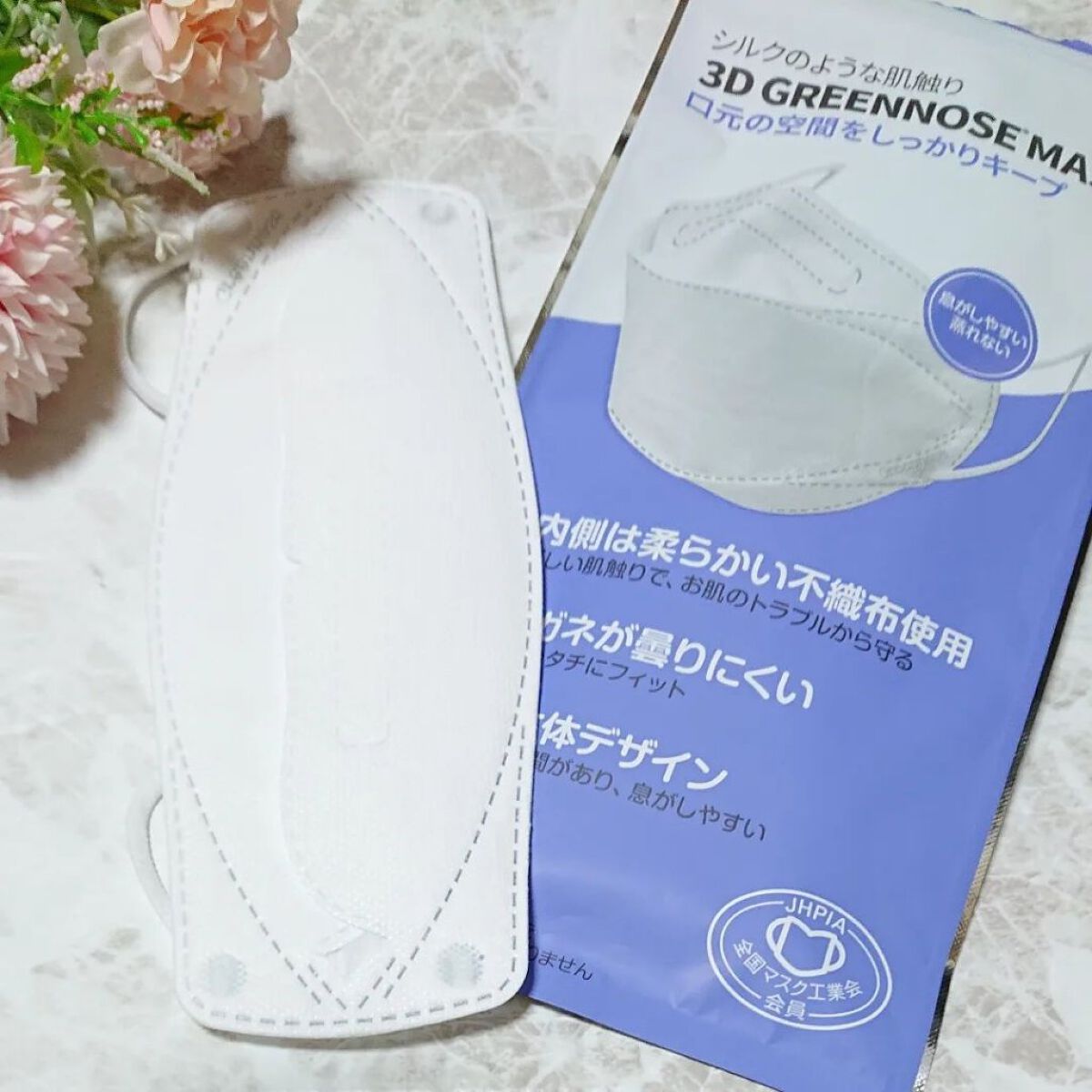 最近立体マスクのよさを実感してるので色々試してるよー❤️「3DGREENNOSEMASK」これつけ心地がすごくいいの!!口元の空間がひろくて、息がしやすくマスク内が蒸れにくい!夏はあせもかくし蒸れやすいからこれ大事だよね!通気フィルターがある...