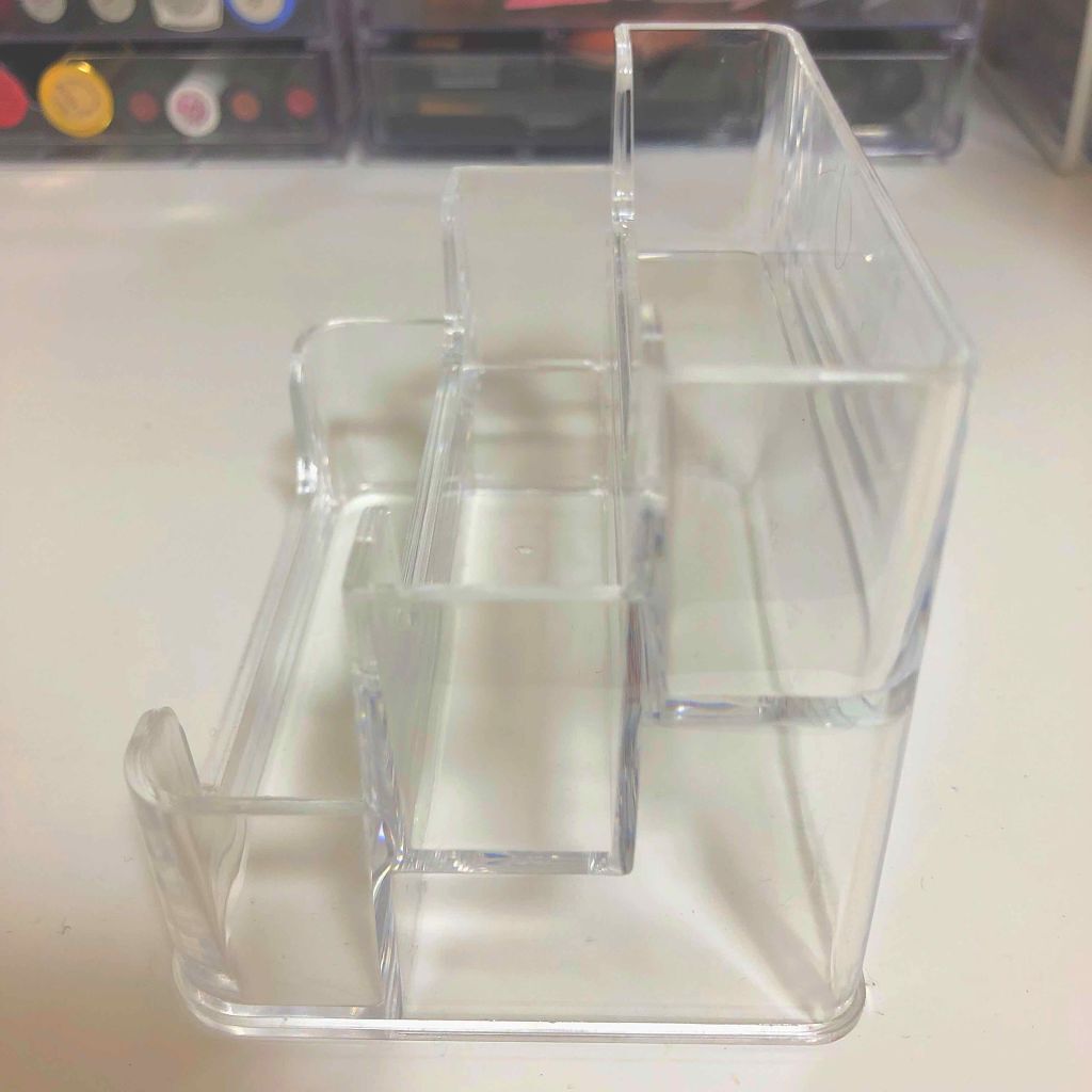 🛒💲108円で可愛く収納💲🛒今日ダイソーで見つけた「3段名刺ケース」を使って収納👌ケースの溝はあまり深くないので背の小さめのものを収納した方がいいと思います💄1番下の段が2、3段目より少し広めです!私の好きな「NAILHOLIC」も収納してみ...