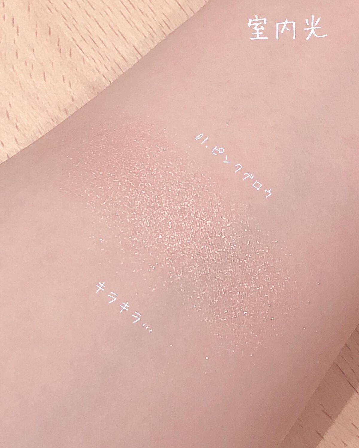 こちらは単色のアイシャドウ✨ ピタッと密着しよれにくい処方。 繊細パールが目もとを艶々に見せてくれます。 ピンクゴールドは、肌にも馴染みやすく ナチュラルカラーなのに、印象的な目もとに変えてくれます🙋♀️ 指で塗るだけなので、簡単なのがいい👍 個人的に全然ありです✨(画像5枚目参照) 目もととの統一感がでるし、 頬もツヤツヤになるし、可愛かったです💕 朝忙しい時の、時短メイクとしても🙆♀️ 指でポンポン塗るだけなので、とっても楽でした✨ 肌にも優しいフリー処方で、 クレンジングいらずの石鹸お湯落ちなのも◎ ツヤ感のあるアイシャドウが好きな方や、 アイメイクを手早く仕上げたい方にも とってもオススメです😉❣️