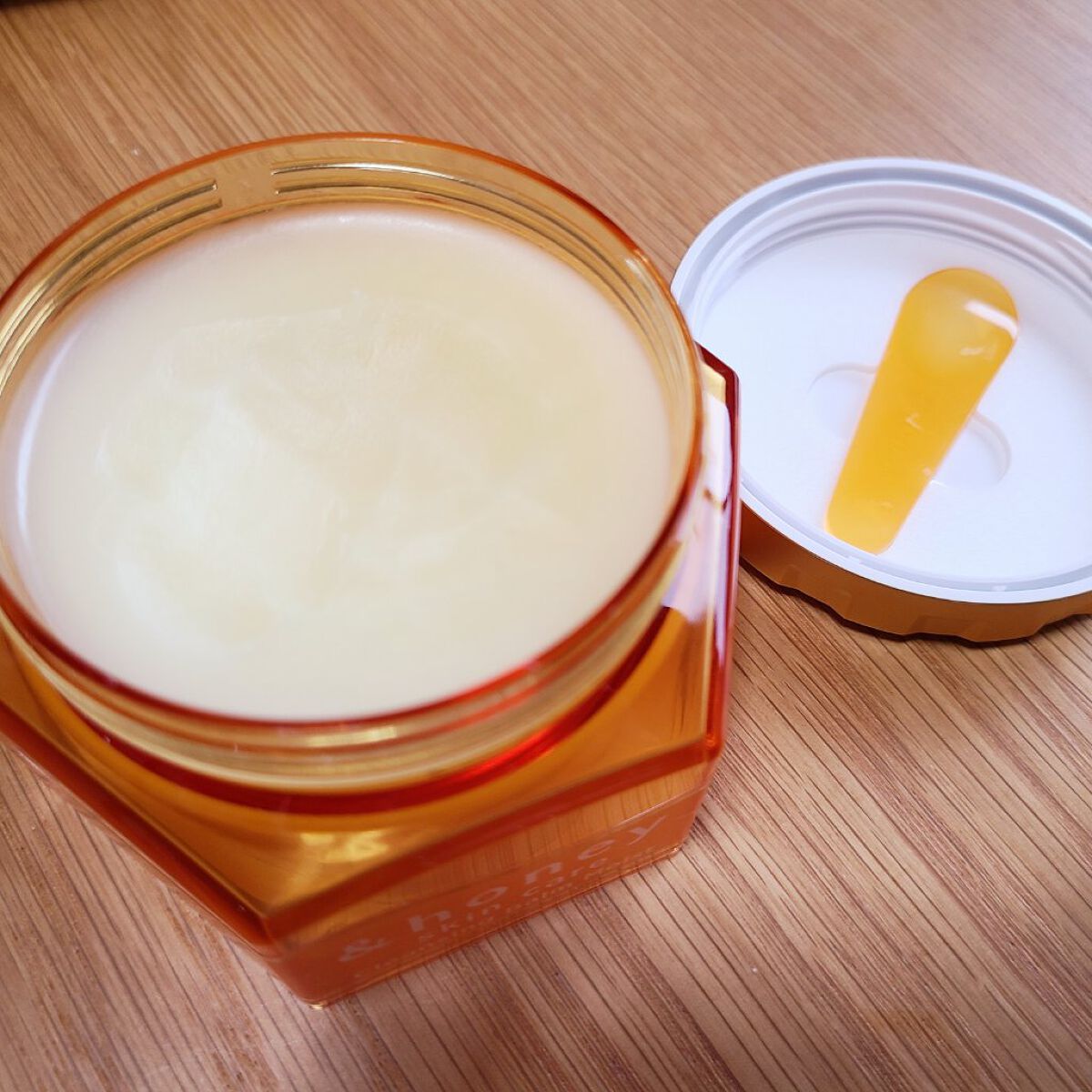 とろける蜂蜜しっとりバーム ヘアケアで有名なアンドハニー!クレンジングもかなり優秀だった👑 体温でとろけるバームで潤いは、しっかり残しつつするんとメイクが落ちてくれるよ🫶🏻 W洗顔不要、まつエクOK!スパチュラ付きで衛生面も考えられてるよ!