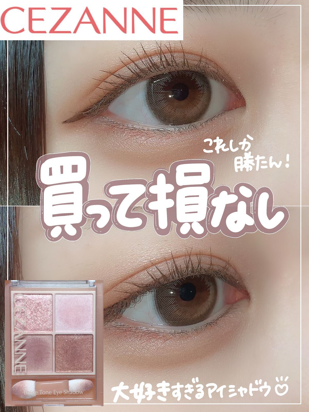 買うしかない可愛さのセザンヌのアイシャドウ!!!🤍プチプラで3色なのにこの可愛さ!!!デートや旅行にもついつい使っちゃうくらい大好きな!!!!甘めピンクブラウンカラーでそんなに甘くなりすぎないけどしっかり盛れるよ🤍デイリーにも使えるからおすす...
