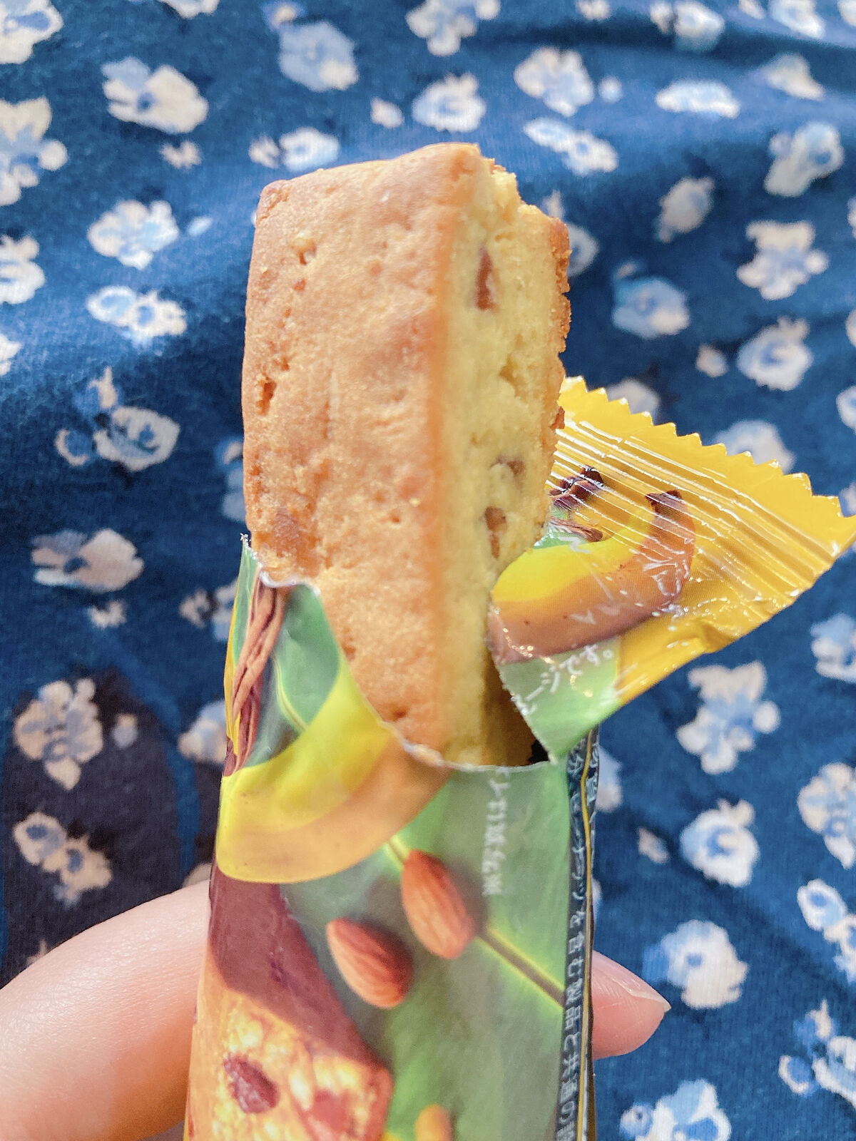 グルテンフリーにも興味があって、どんなのかドキドキ。結果お腹の張りはなかったです。 しっとりした生地の中にザクザクしたナッツが入っていて食べ応えがありました。 割ってもポロポロこぼれないのがよかったです。 100%植物性原材料で、ヴィーガン認証取得。 高タンパク、低GI*食品。