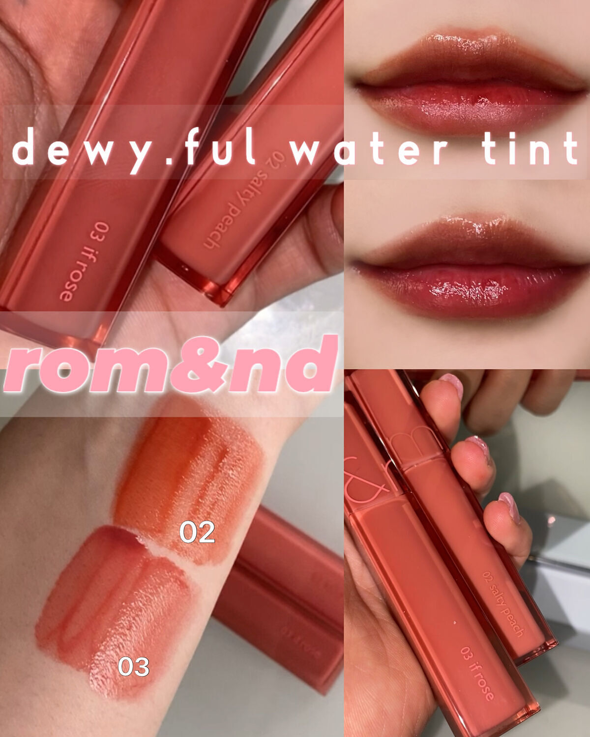 \肌に馴染む🫧MLBBカラー🫰🏻/♡rom&nddewy-fulwatertint各¥1,320税込少しくすんだ落ち着きのある色合いMLBBカラーたち🫶🏻dewy-fulwatertintの中でも肌馴染みがよく透け感たっぷりのヌーディーカラー...