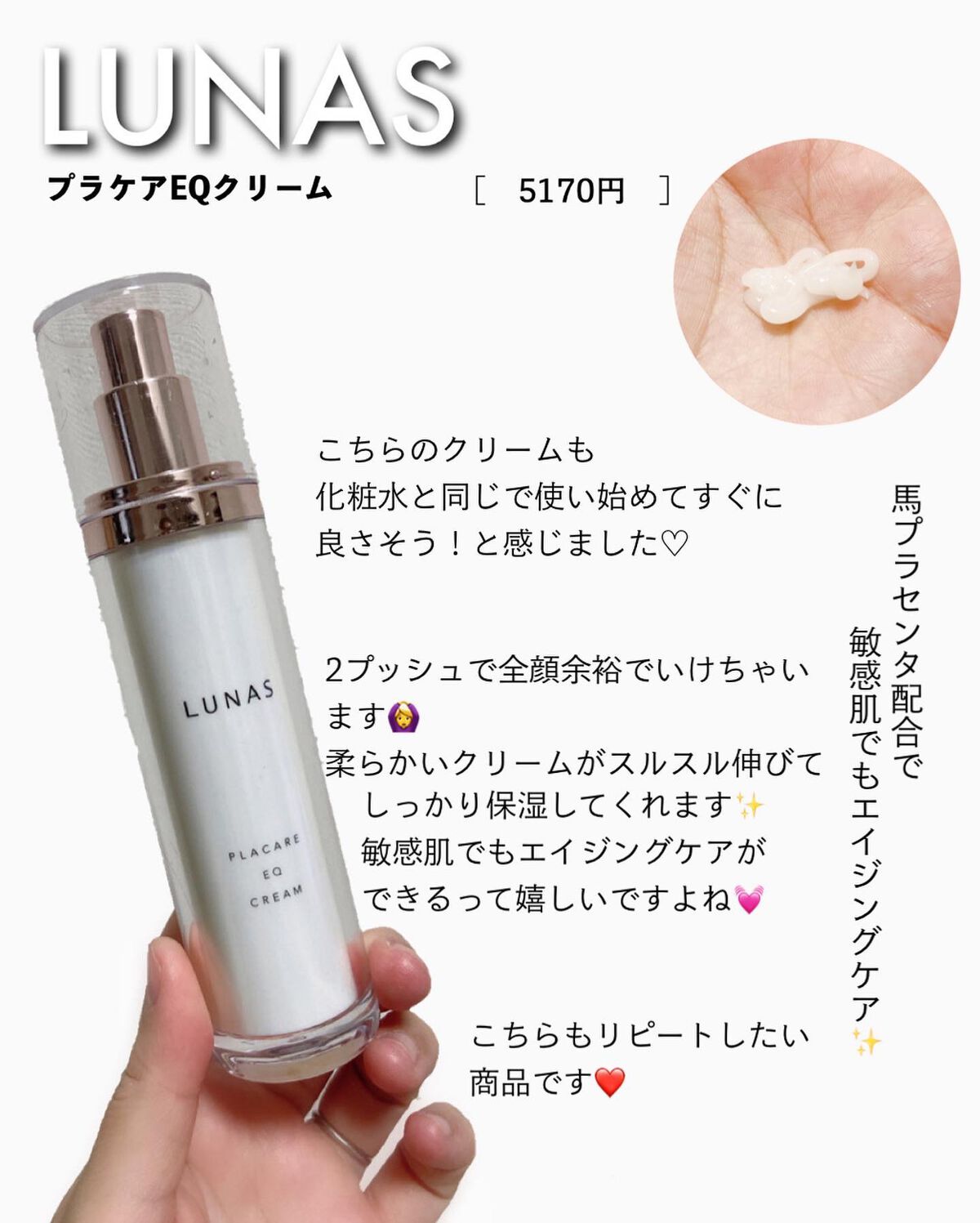 | テクスチャーはふわっとしたクリームで肌に馴染みやすくベタつきはなし 本当に使いやすいクリームです✨ | 詳細を見る | ||