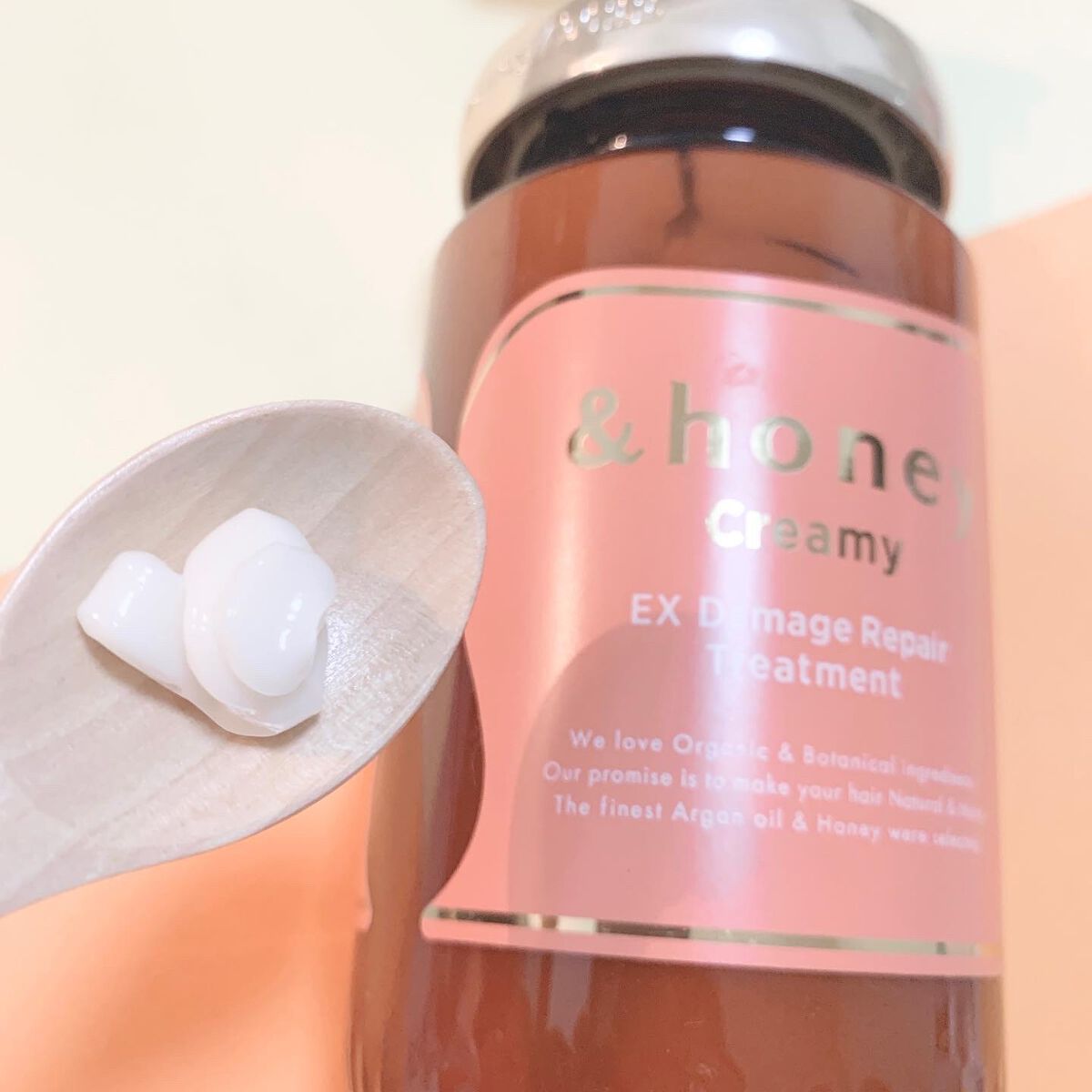 &honeyCreamyEXダメージリペアシャンプー1.0ヘアトリートメント2.0【詰替用】アエナで2つ合わせて、約800円ほどで購入しました!●シャンプーモッタリとした重めのテクスチャです。甘い香りがするので、最初は少しキツかったです。持続...