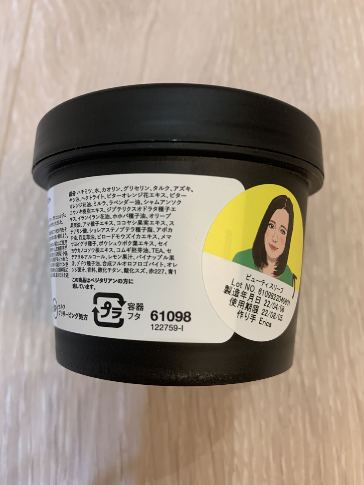 - <125g> ハチミツ、水、カオリン、グリセリン、タルク、アズキ、ヤシ油、ヘクトライト、ビターオレンジ花エキス、ビターオレンジ花油、ミルラ、ラベンダー油、シャムアンソクコウノキ樹脂エキス、ジプテリクスオドラタ種子エキス、イランイラン花油、オリーブ果実油(オリーブ油)、ドロマイト、PG、ブドウ種子油、アマ種子エキス、ココヤシ果実エキス、ステアリン酸、ホホバ種子油、アボカド油、月見草油、ビロードモウズイカエキス、メマツヨイグサ種子、ボウシュウボク葉エキス、セイヨウカノコソウ根エキス、コムギ胚芽油、TEA、パイナップル果汁、セテアリルアルコール、合成フルオロフロゴパイト、レモン果汁、オレンジ果汁、香料、酸化チタン、酸化スズ、赤227、青1 <315g> ハチミツ、水、カオリン、グリセリン、タルク、アズキ、ヤシ油、ヘクトライト、ビターオレンジ花エキス、ビターオレンジ花油、ミルラ、ラベンダー油、シャムアンソクコウノキ樹脂エキス、ジプテリクスオドラタ種子エキス、イランイラン花油、オリーブ果実油(オリーブ油)、ドロマイト、PG、ブドウ種子油、アマ種子エキス、ココヤシ果実エキス、ステアリン酸、ホホバ種子油、アボカド油、月見草油、ビロードモウズイカエキス、メマツヨイグサ種子、ボウシュウボク葉エキス、セイヨウカノコソウ根エキス、コムギ胚芽油、TEA、パイナップル果汁、セテアリルアルコール、合成フルオロフロゴパイト、レモン果汁、オレンジ果汁、香料、酸化チタン、酸化スズ、赤227、青1
