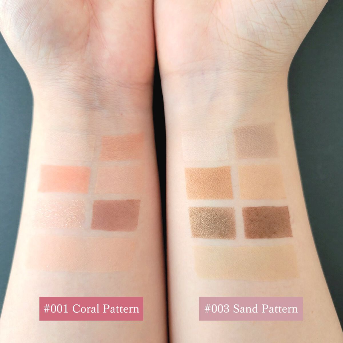 - ■オールインワン パレット:このパレットには密着性の高いマットな色合い5色、シアーなグリッター1色、ブレンドできるチーク1色が入っています。このパレットだけで無限にスタイルを作ることができます。 ■高い発色性とブレンドしやすい成分:なめらかなブレンドテクスチャと鮮烈な発色のアイシャドウは、ブレンドして目と頬に塗り、簡単になじみます。 ■外出先でも使えるポータブルサイズ:クレジットカードの大きさとデザインを参考に作られたミニパレットは、日常的に使用できます。またメイクの仕上げに必要な7色が全部そろっています。 ■3つのパレットから選べます:コーラルピンクとブラウン系のコーラルパターンパレット、ピンクとブラウン系のペタルパターンパレット、必要なブラウン系の色がすべて入ったサンドパターンパレットからお選びいただけます。