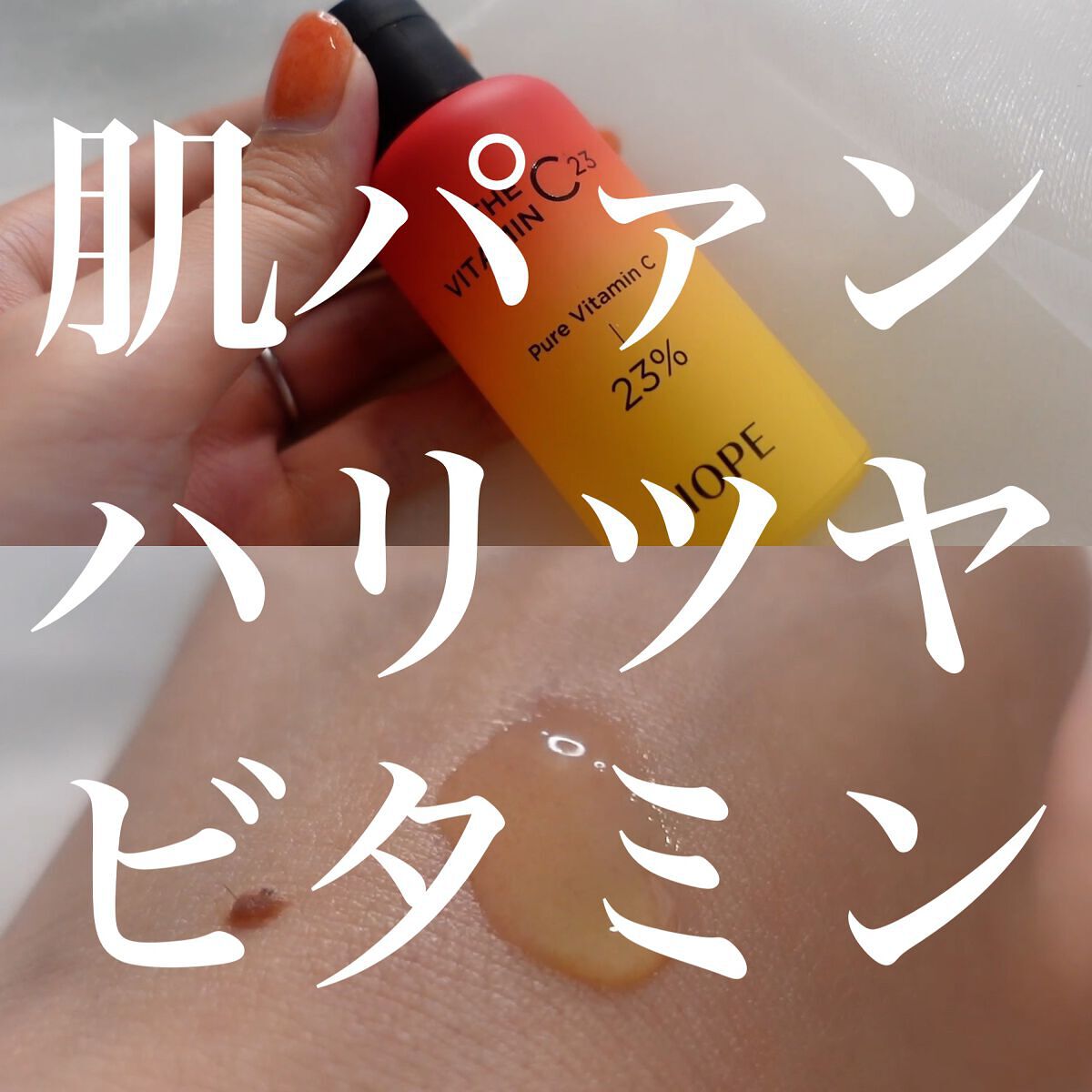以前購入してから毎晩欠かさず使っているのですが、これなしのスキンケアは考えられない!と思うほどハマってしまいました!!☺️ 夏は特に紫外線をたくさん浴びるので、シミやそばかすを防ぐためにビタミンCのスキンケアは必須です! こちらの美容液はビタミンCが23%も含まれています!🍋 そして、この美容液を塗った次の日は肌がもちもちしていて、化粧ノリがとっても良くなります!!🙆🏻♀️ 私は、ビタミンC特有のしみたりヒリヒリする感じも特にありませんでした!! シミやそばかすが気になる方、肌のツヤ、弾力、キメを整えたい方に是非おすすめのIOPE ザビタミンC23です!!☺️
