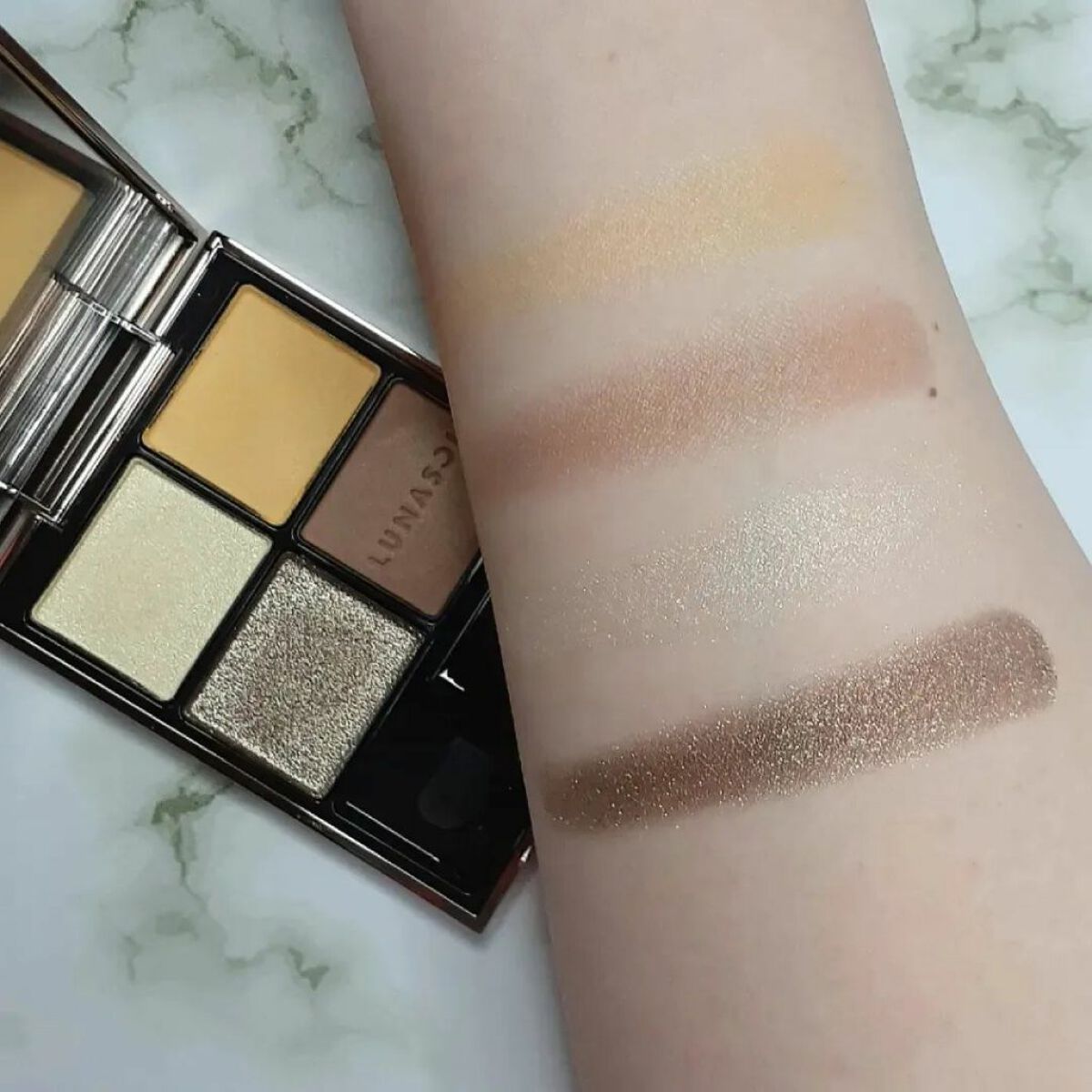 全色にパールとラメがふんだんに入っていて控えめな発色、上品な煌めきが美しい😍❤ 肌馴染みが良く、グラデーションも作りやすいので、どんなに重ね付けしても失敗しない❗ 柔らかめな粉質はしっとりとして密着度が高く、粉飛びもラメ飛びもしません‼ 上品なツヤと輝きは流石👏👏👏❤