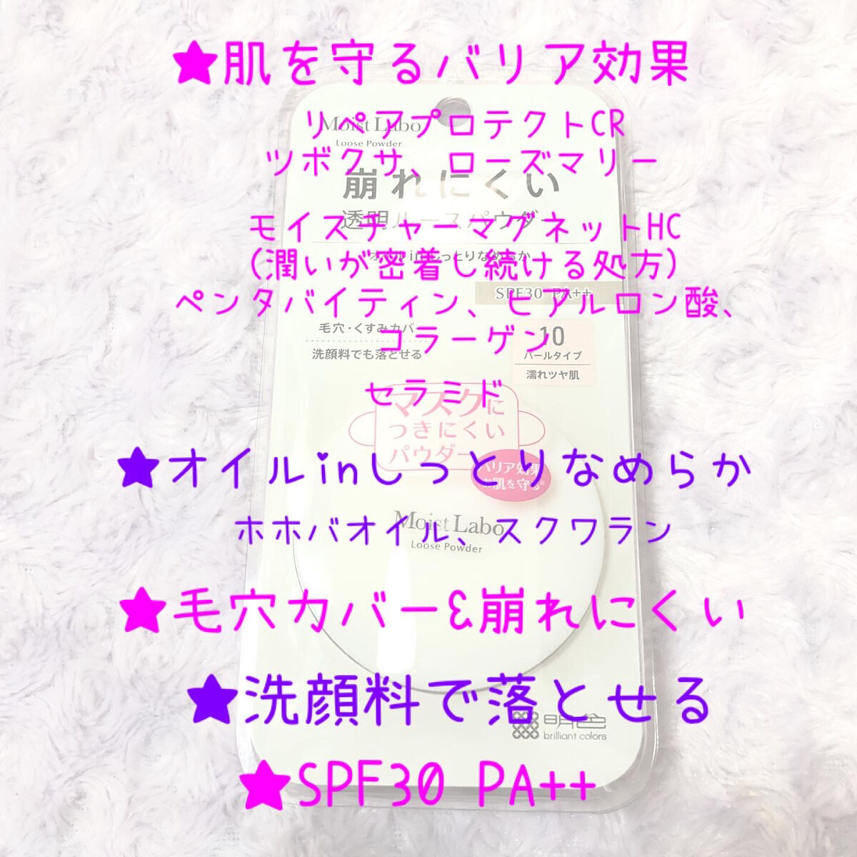 モイストラボ ルースパウダー20テカリ防止タイプSPF30PA++毛穴カバー&崩れにくいベタつく部分使いにも単品使用の場合洗顔料で落とせる🌟さらすべ系のパウダーでもSPFが30以上あるのが嬉しいところ付属のパフも厚みがあり使いやすいので持ち運...