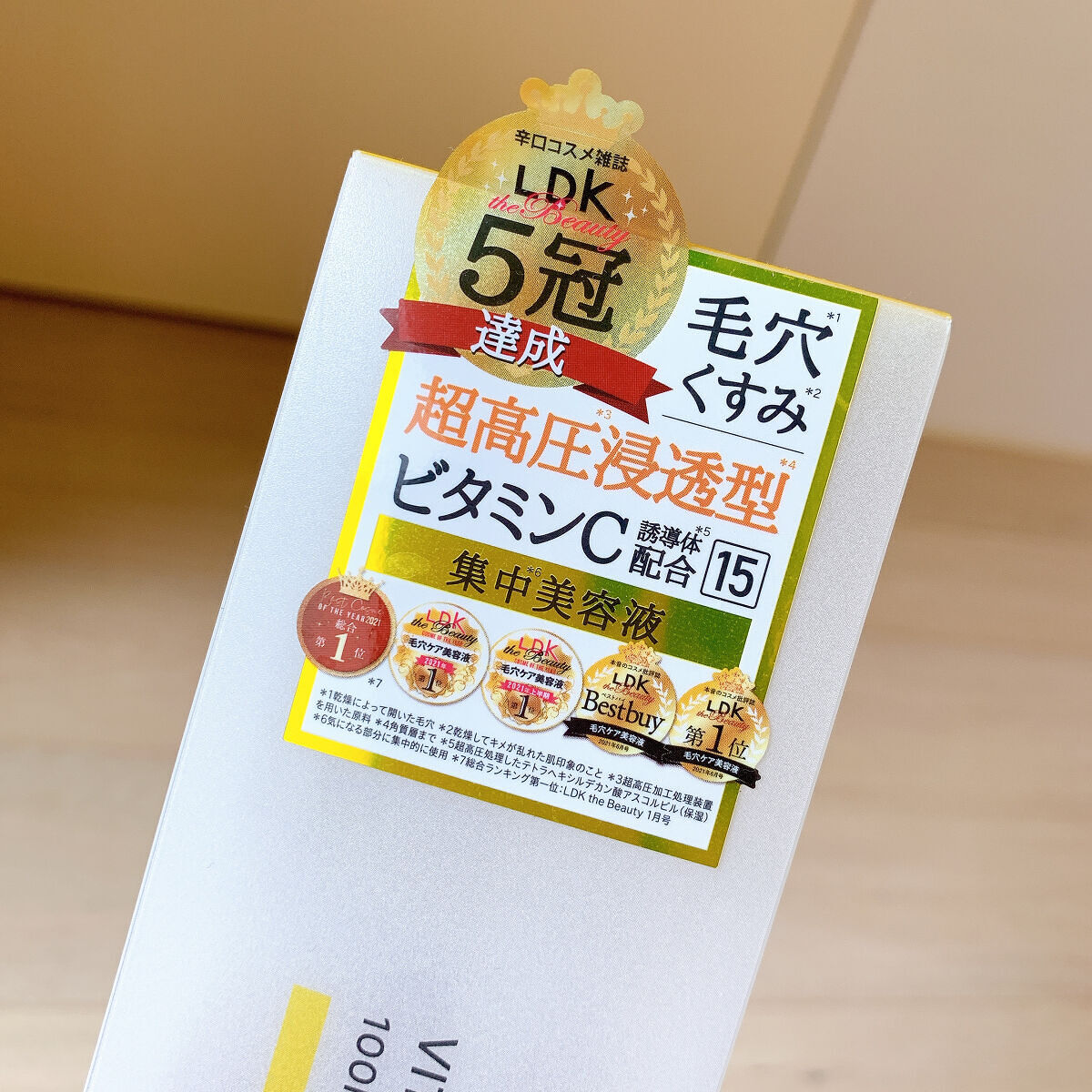 - <V エッセンス> 水、グリセリン、DPG、3-グリセリルアスコルビン酸、ペンチレングリコール、クエン酸Na、テトラヘキシルデカン酸アスコルビル、クエン酸、トコフェロール、イヌリン、オウレン根エキス、オレイン酸ポリグリセリル-10、BG、キサンタンガム、1,2-ヘキサンジオール、ピロ亜硫酸Na、フェノキシエタノール
