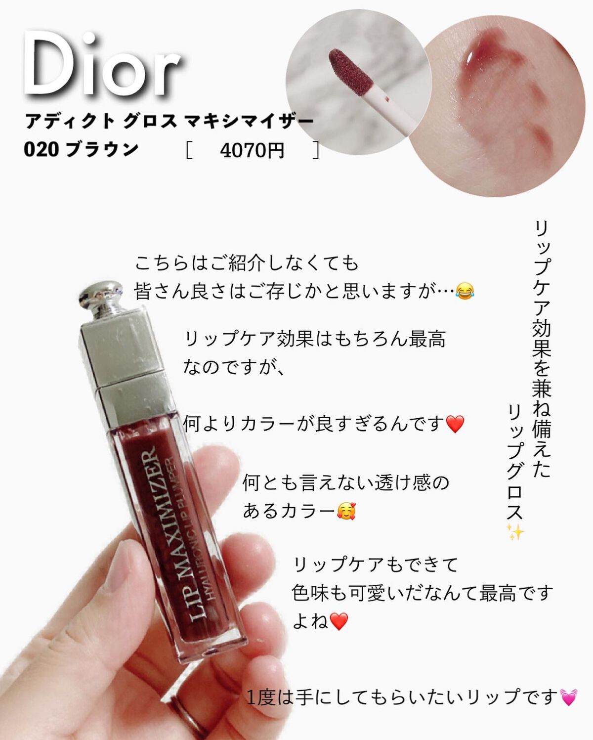 購入品紹介𖤣𖥧𖥣𖡡𖥧𖤣✔︎𝘋𝘪𝘰𝘳☑︎アディクトグロスマキシマイザー 020ブラウン・・・4070円■商品(カラー)全18色☆019トーキョーピンク〈オンライン限定〉☆001ピンク☆026プラム〈数量限定〉☆027オパール〈スプ...