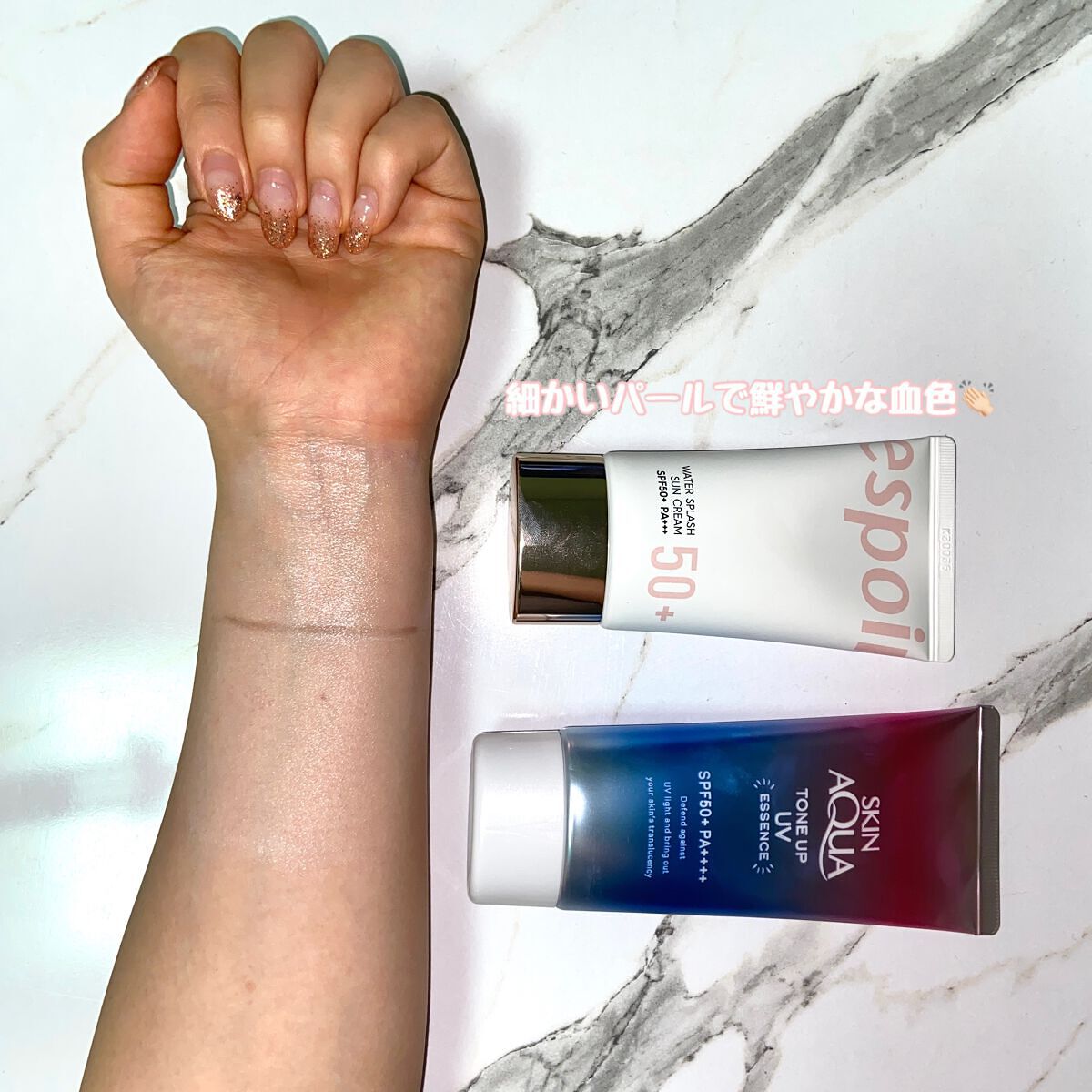 espoir日焼け止め下地🤍🤍🤍🤍🤍🤍🤍🤍🤍🤍🤍トーンアップ下地ウォータースプラッシュサンクリームセラミドSPF50+PA++++トーンアップ感パウダー重ねて使用がお気に入り#肌水分チャージレシピ気になってる方はチェックしてみてください#es...