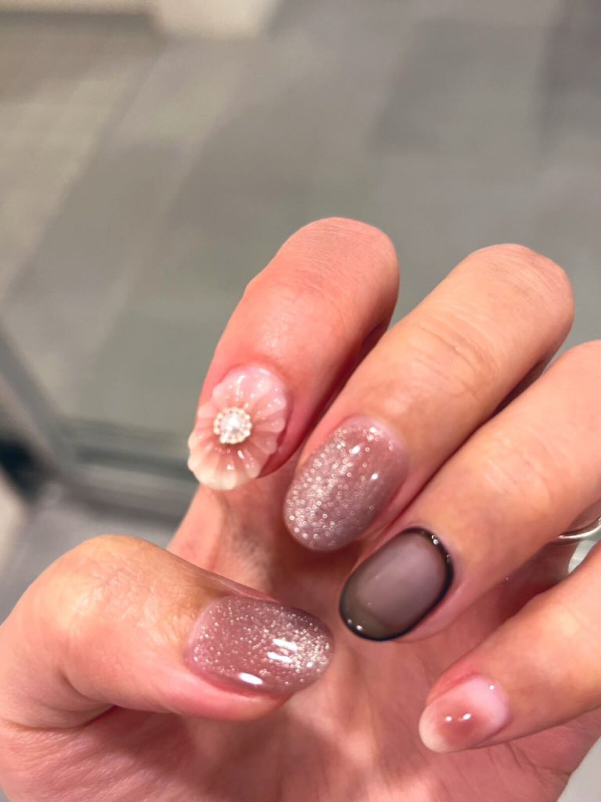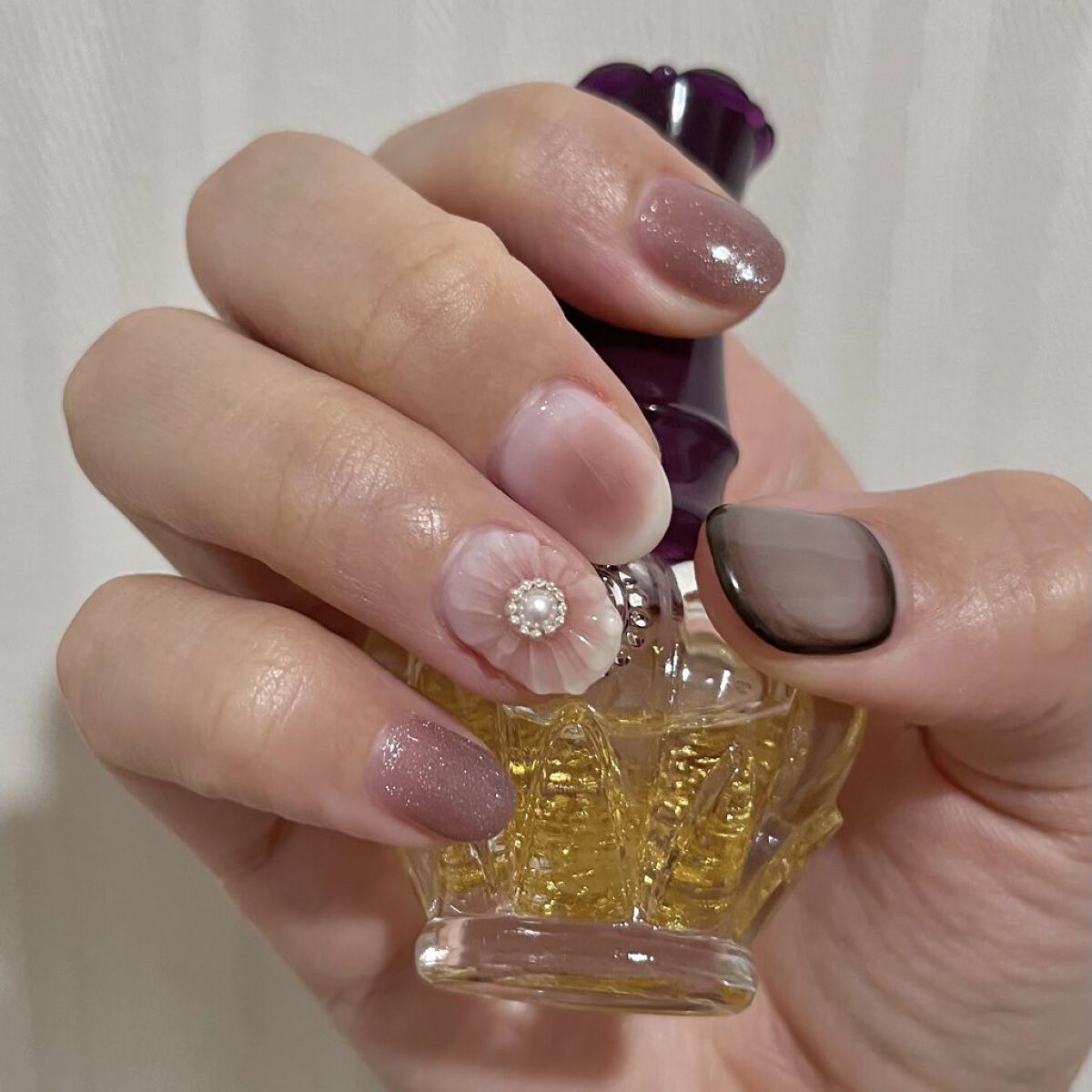 スリコの剥がせるマグネットネイルから新シリーズが登場!微粒子ラメの入ったシルキーマグネットネイルとなっています✨ シルキーマグネットネイルはキラキラ感は控えめ。ホワイトラメがふんわりと上品に輝きます✨透け感が強めなので他のカラーと重ねて使うのもおすすめです😊 通常のマグネットネイルのシリーズがおすすめ!ラメの粒が大きめでキラキラしてて華やかでした😊