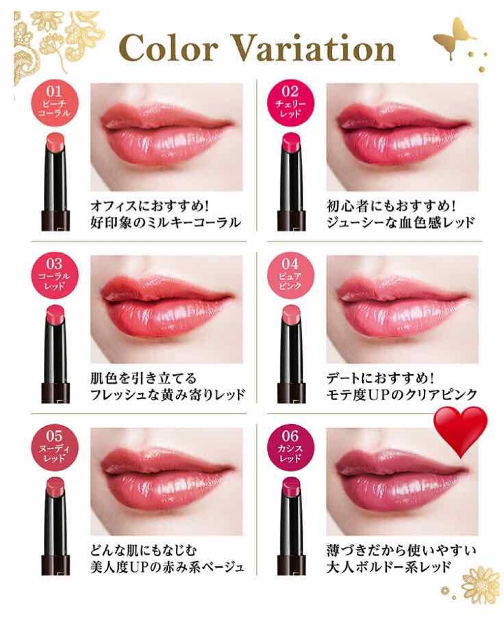 | 口紅・グロス・リップライナーランキング第31位 | ほんのりフルーツみたいな良い香りがします🍎 付けた感じのテクスチャーはぷるもち系ですね | 詳細を見る | |