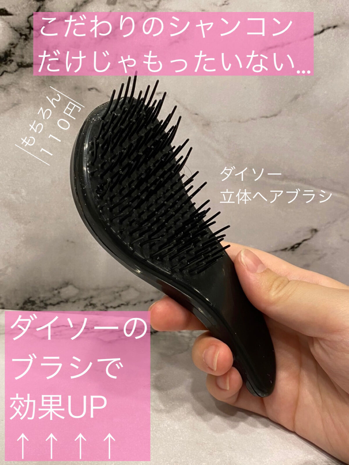 DAISO立体ヘアブラシ何年か前に“タン○ルティーザー”のジェネリック的存在として登場したダイソーのブラシがボロボロになったので新調。前は水色だったけど今回は落ち着いたトープカラーがおされ!朝起きた時に毛流れを整えるのに使うことが多いです✨大...
