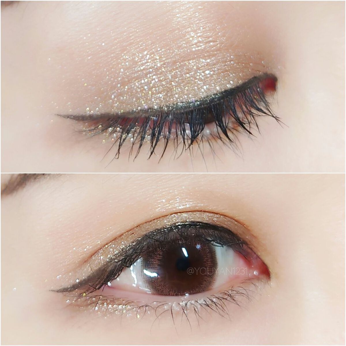 グリッターって水気があるイメージでしたが、このグリッターは水気が一切ないソフトグリッター!! 開けた時に、グリッターがポロポロこぼれてきてしまってびっくりしたのですが つけ心地は最高でした❤︎ まず、チップに適量しか付かないのでつけすぎることがありません! 瞼につけてぽんぽんと指でぼかしていくと、ぴったりくっついて密着度よき! また、伸びが良くぼかしやすかったです! 絶妙な大人っぽいカラー、上品な煌めきなので、年齢問わず使えると思います♪
