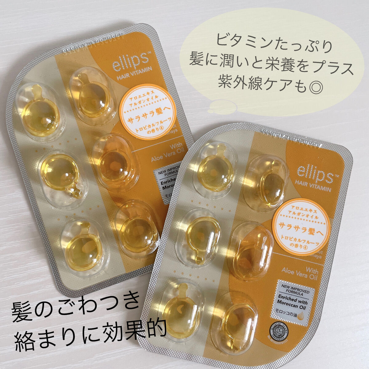 ellipsヘアーオイルスムース&シャイニートロピカルフルーツの香り有名なヘアオイルをいただきました‼️一時期売り切れ続出で手に入りませんでしたよね😭個人的な意見としては…髪はボブよりちょっと長いぐらいなのですがひとつじゃ物足りない…けどふた...