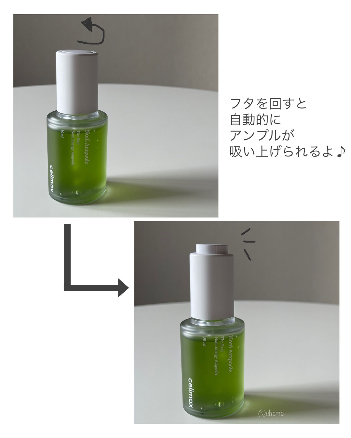 ノニは南太平洋一帯に育つ植物で約340種もの栄養分を含むスーパーフードだそう。肌に必要な水分・ビタミン・アミノ酸などが豊富に含まれ、スキンケアとしても力を発揮してくれる貴重なものみたいです。 ノニエキス80%配合のトナーはサラサラでさっぱりとした使い心地。うるおいたっぷりでみずみずしく何度も重ねづけしたくなります。 アンプルには71.77%のノニエキスに加えノニの種オイルを配合。肌を鎮静させながら栄養を与え、健康的な状態へと導きます。