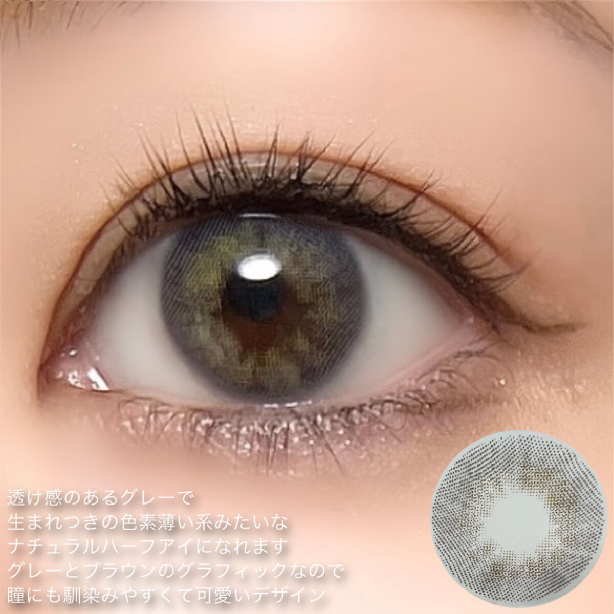 個性的なカラーからナチュラルなものまで幅広いラインナップで見てて楽しかったです! 透明感のあるブルーグレーが瞳に溶け込み、リアルなグレーアイに見せるレンズ。 透け感のある色味だけどしっかり発色するナチュラルハーフ系カラコン。着色直径も小さめなので着せ替え感があってかわいい。 N's COLLECTIONはレンズのつけ心地もすごく良くて他のカラーもとっても可愛いです!
